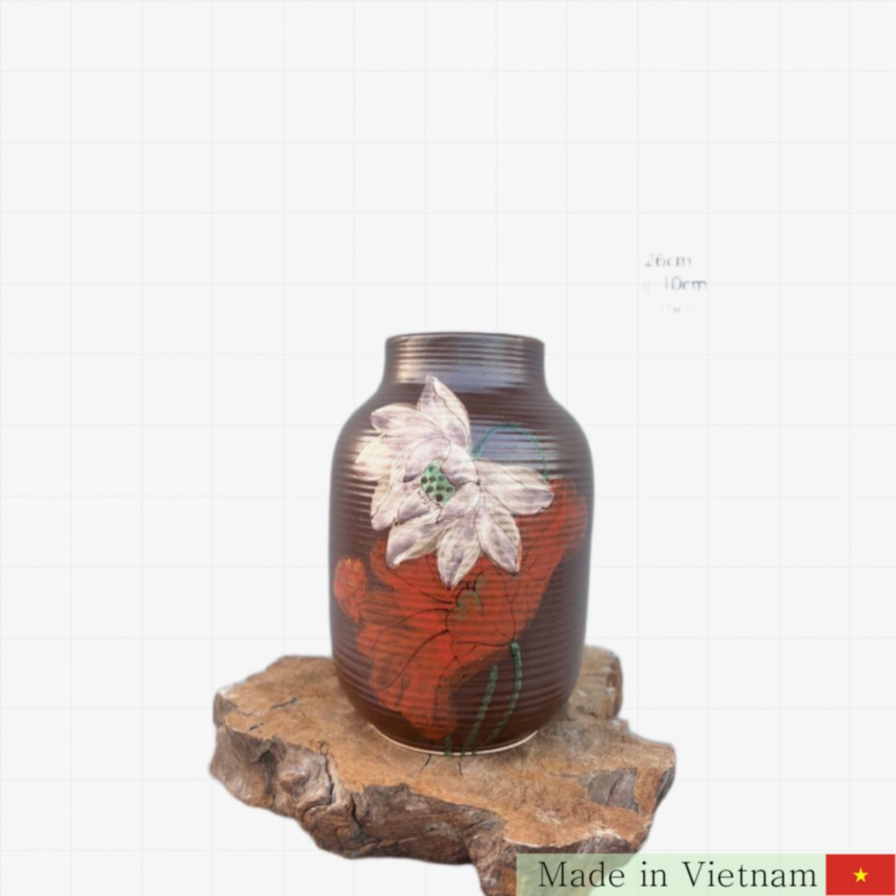 이 브라운 연꽃 문양 도자기 화병은 베트남의 유명한 바트랑(Bát Tràng) 도자기 수공예 작품입니다. 전통적인 바트랑 도자기 기술로 정교하게 제작되어 집안 어디에나 고급스러운 분위기를 더해줍니다. 이 화병은 단순한 꽃병을 넘어 소중한 인테리어 포인트로서의 가치를 자랑합니다.