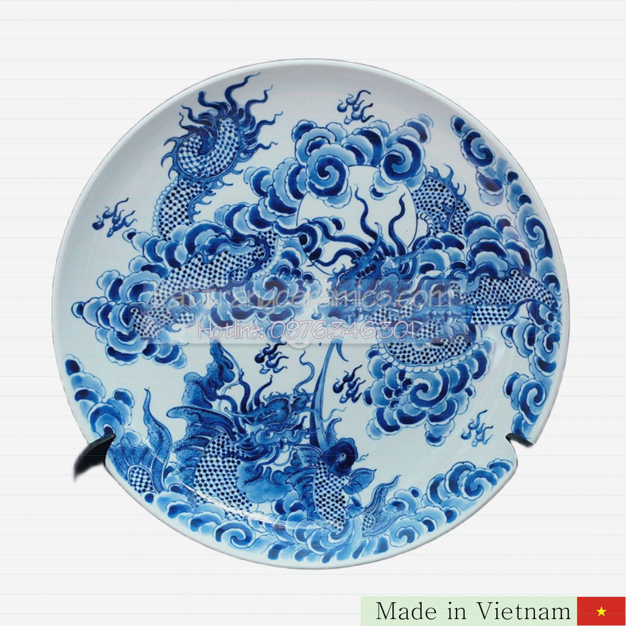 현대적인 미학과 전통 장인이 만들어낸 정교함이 만나 탄생한 38cm 크기의 쌍룡 도자기 장식 접시를 소개합니다. 100% 수작업으로 완성된 이 접시는 고급 바트짱 도자기의 진수를 느낄 수 있는 최고의 인테리어 아이템입니다. 깨끗한 백색 유약 위에 섬세하게 그려진 쌍룡 무늬는 공간에 고급스러운 품격을 더해 줍니다. ☁️🎨