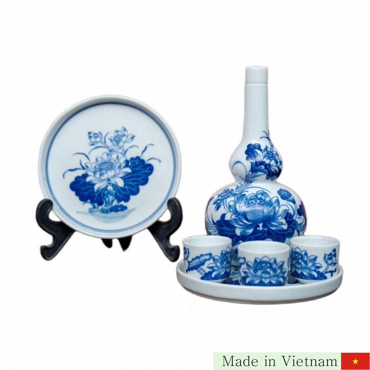 저희가 자랑하는 이 전통 청자 도자기 술병 세트는 바트장(바트장) 장인의 손길로 완성된 예술 작품입니다. 부드러운 흰색 도자기 바탕에 우아한 청색 연꽃 무늬가 반수공 기법으로 섬세하게 그려져 있어, 고급스러운 분위기를 자아냅니다. 전통을 살리면서도 현대적인 미감을 더한 이 술병 세트는 집안 제사상에 완벽한 선택입니다.