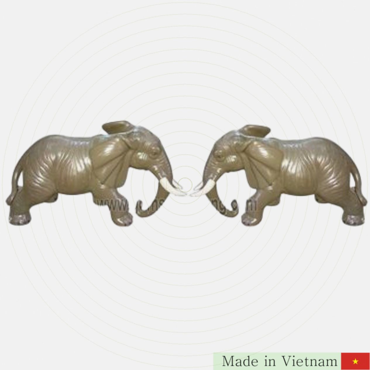 도자기 코끼리 쌍 세트 – 바트짱 전통 갈색 도자기 🐘✨