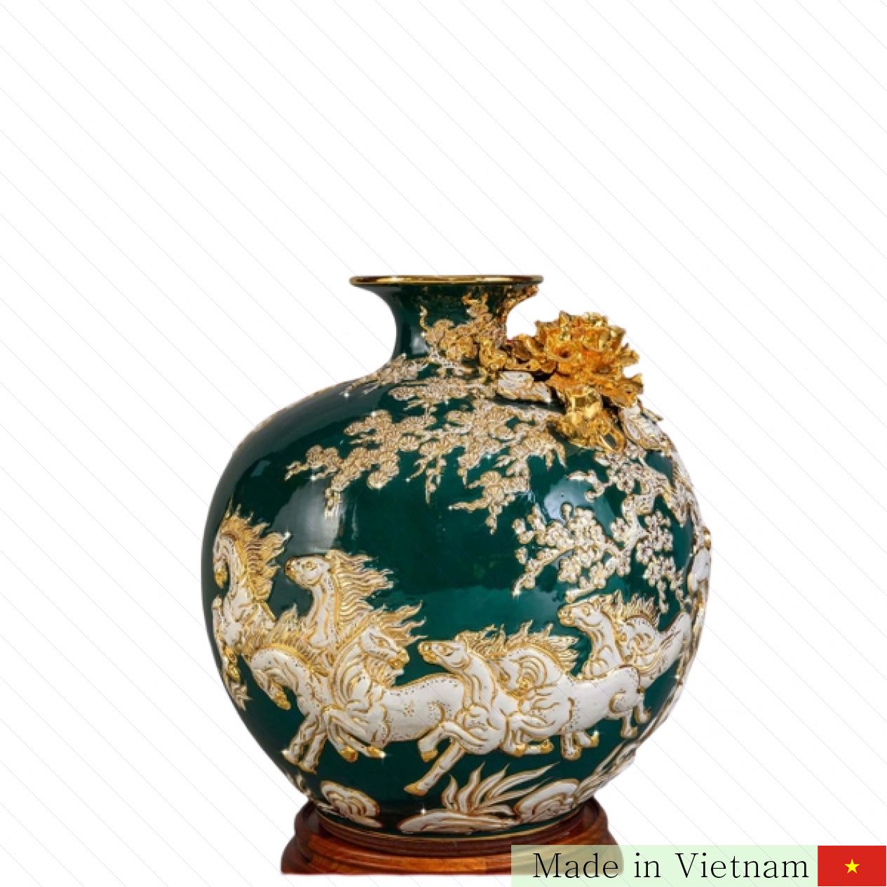 제품명: Bình Hút Lộc Mã Đáo Thành Công 청록색 광택 with 황금문양, Bát Tràng 고급 도자기