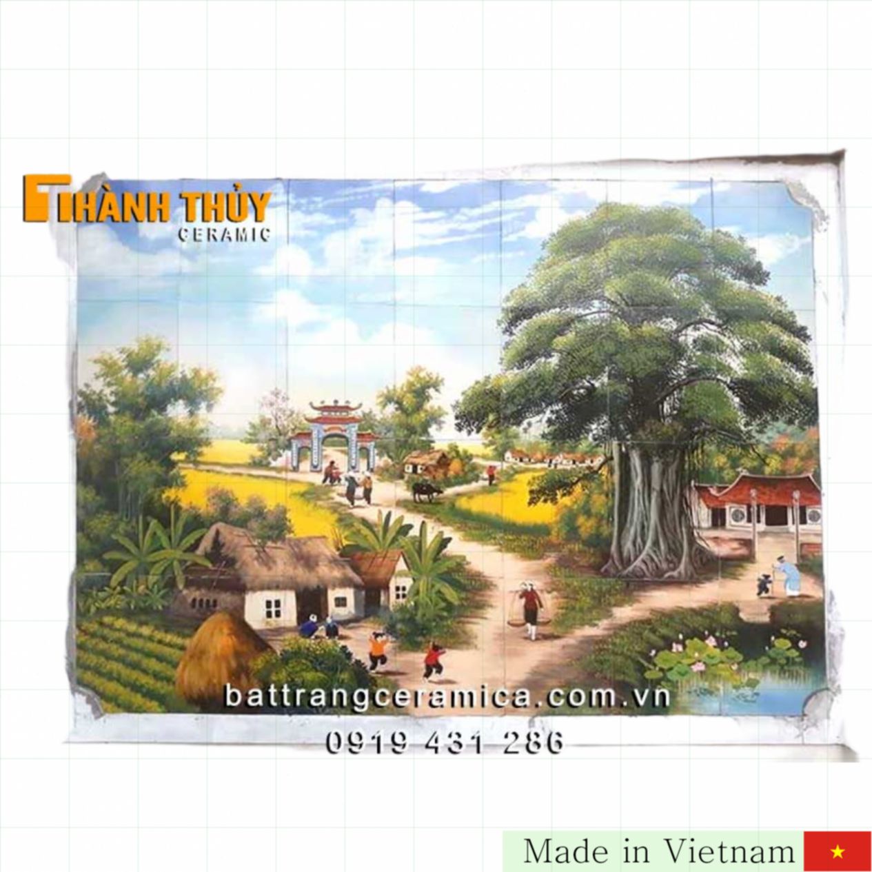 저희는 자연의 평화로운 시골 풍경을 담은 야외 벽 장식용 도자기 그림을 소개합니다. 이 작품은 전통 도자기 예술의 정수인 바트짱(Bát Tràng) 도자기로 정성스럽게 제작되어, 그 어떤 공간에도 고급스러운 분위기를 더해줍니다. 특별한 바트짱 도자기 특유의 질감과 색감이 생생하게 살아 있어 오랜 시간 변색 없이 아름다움을 유지합니다.