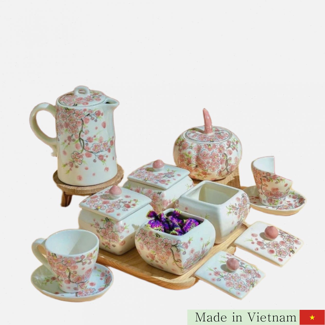 저희가 소개하는 복록원명(Boklokwonmyeong) 프리미엄 분홍 복숭아 무늬 꿀단지 세트는 바트짱(Bát Tràng) 도자기의 전통과 예술성을 담아내어 최고의 품질을 자랑합니다. 이 제품은 단순한 저장 용기를 넘어 집안 분위기를 한층 고급스럽고 풍성하게 만들어 줍니다.