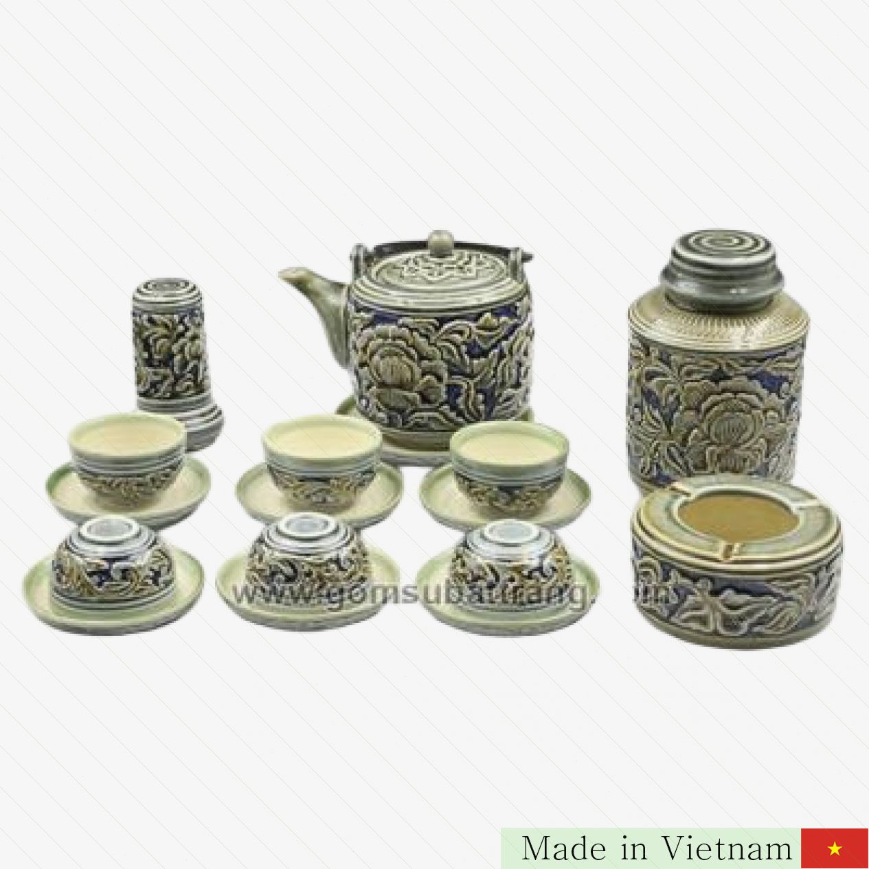 저희는 정교하게 제작된 부각된 수국 문양의 찻잔 세트를 소개합니다. 이 세트는 단순한 찻잔을 넘어 집안 분위기를 한층 고급스럽게 만들어 줍니다. 옥색의 은은한 빛깔이 조화로운 골드 빛 유약으로 마감되어 시선을 사로잡는 디자인입니다.