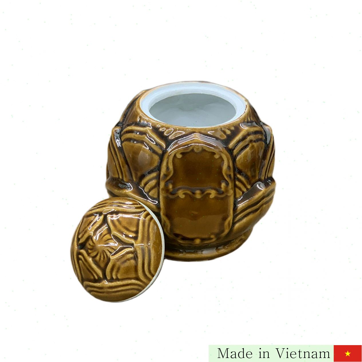 부드러운 갈색 연꽃 봉우리 모양 유골 단지가 당신의 소중한 기억을 영원히 간직해 드립니다. 이 아름다운 유골 단지는 전통적인 바트짱 도자기로 만들어졌으며, 높이는 20cm로 적당한 크기입니다. 각인 공간에는 고인의 이름, 주소, 그리고 사진을 새겨 소중한 추억을 온전히 담을 수 있습니다.