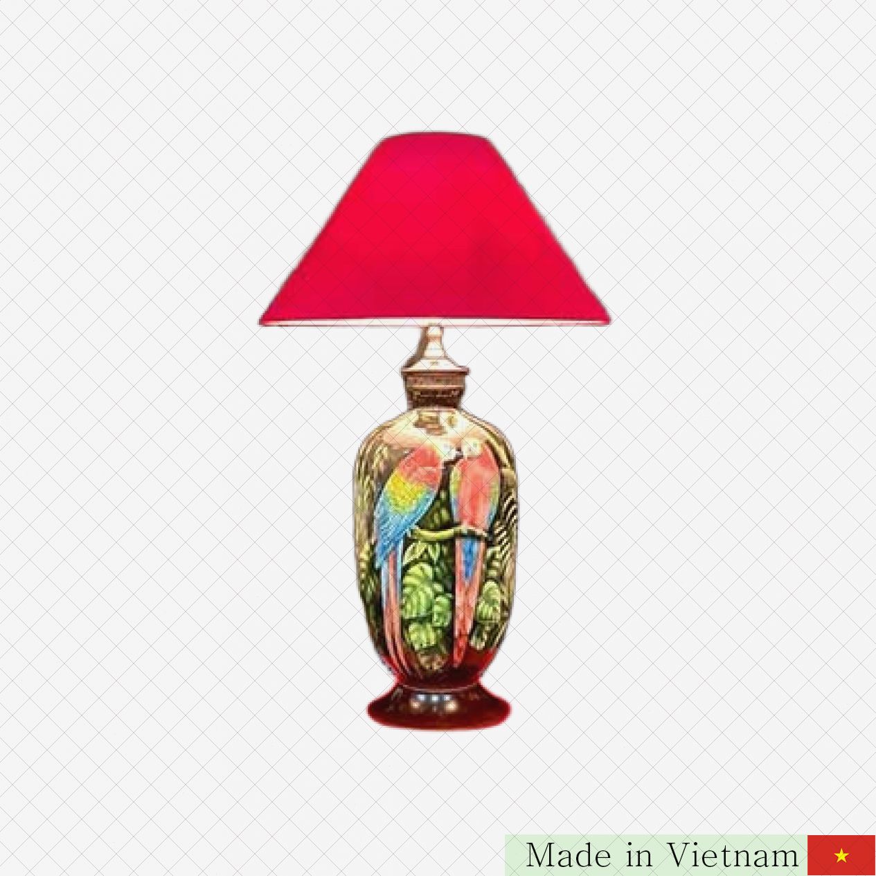 고급 도자기 장인 Bát Tràng에서 손수 만든 빨간 꼬리를 가진 앵무새가 그려진 고급 도자기 탁상등을 소개합니다. 이 독특한 디자인의 조명은 침실 분위기를 한층 특별하게 만들어 줄 뿐 아니라, 고급스러운 장식 효과까지 겸비했습니다.