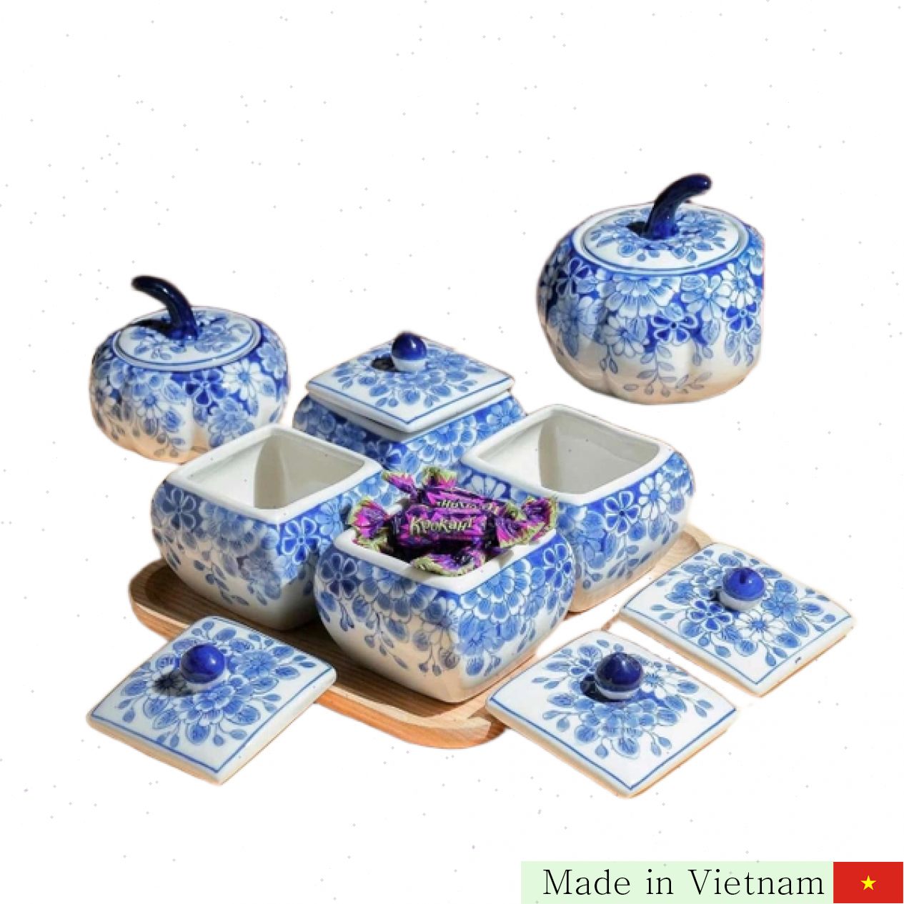 제품명: 바트짱 도자기 청국화 무늬 잼통 세트 (Phúc Lộc Viên Minh)