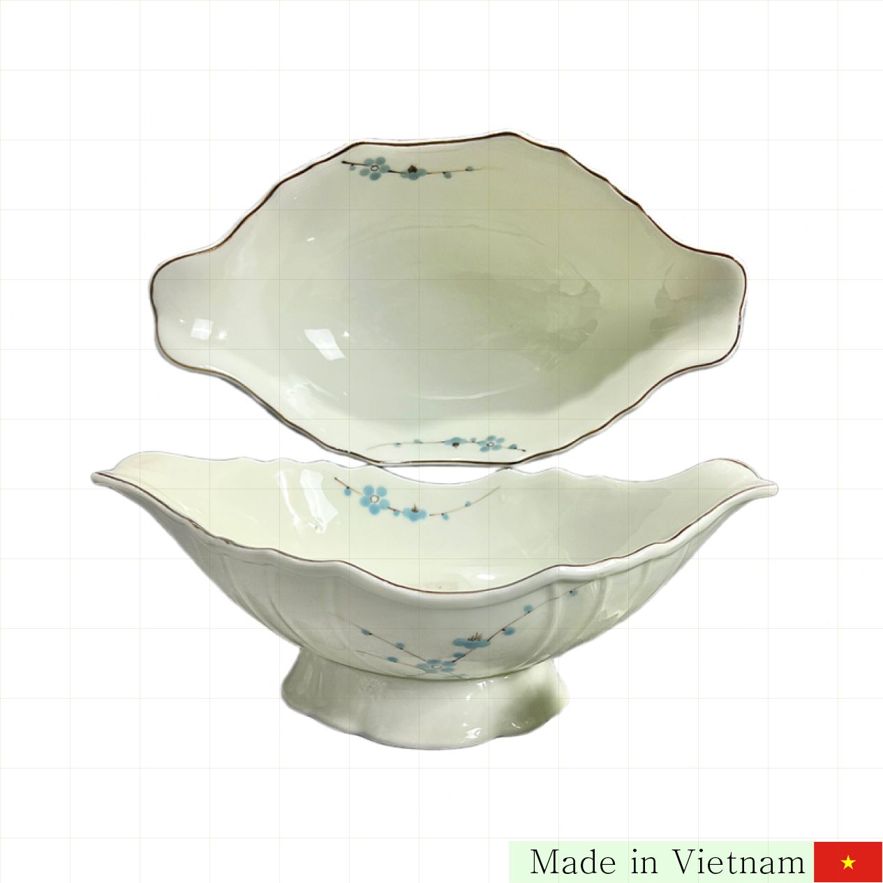 우리는 명품 바트짱(Bát Tràng)에서 제작한 고급 제사용 닭 담는 그릇을 소개합니다. 이 그릇은 반짝이는 유약 처리된 도자기로 만들어졌으며, 푸른 복숭아꽃 무늬가 고혹적인 아름다움을 자아냅니다. 전통적인 배 모양 디자인이 독특하고 고급스러운 분위기를 선사해 제사상에 품격을 더합니다.