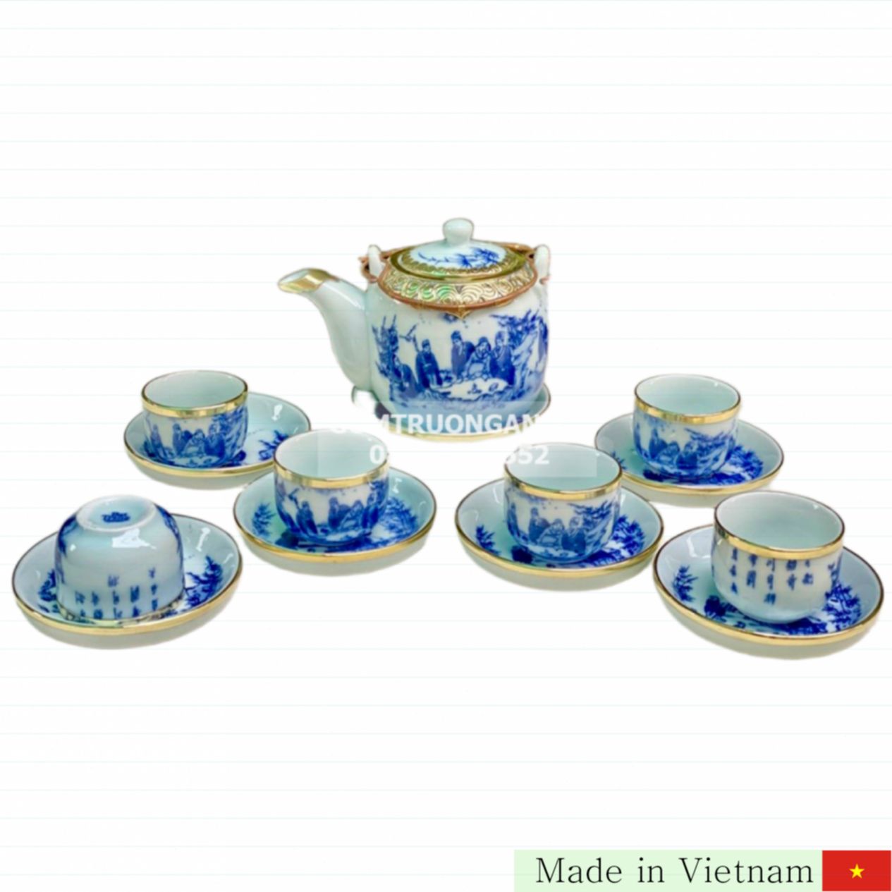 아름다운 전통과 현대의 감각이 어우러진 Bát Tràng(바트짱) 동 동봉 다기 세트, Trúc Lâm Thất Hiền(죽림칠현) 청자 디자인의 항아리형 다기를 소개합니다. 이 세트는 뛰어난 품질과 건강에 안전한 소재로 많은 사랑을 받고 있습니다.