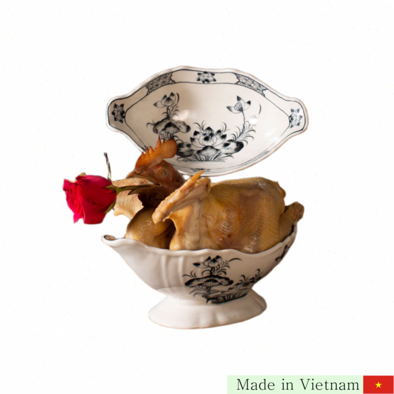 이 그릇은 아름답고 정교한 연꽃 문양으로 장식된 전통 배 모양입니다. 광택 나는 고품질 도자기 소재로 만들어져 내구성이 뛰어나며 오랜 기간 사용해도 변하지 않는 우아함을 자랑합니다. 닭 제사에 완벽한 크기와 디자인으로 특별한 의식을 더욱 빛내줍니다.