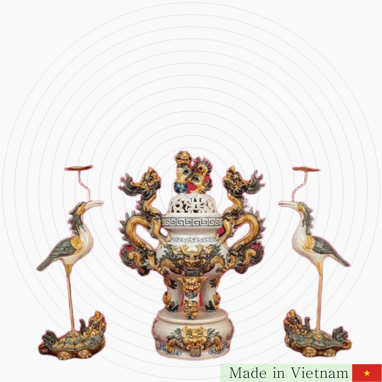 이 [IMG] 제품은 Bát Tràng의 유명한 장인들이 100% 손으로 빚고 그려내어, 단순한 인쇄가 아닌 생동감 넘치는 붓터치와 세밀한 조각이 특징입니다. 전통적인 고급 도자기 기법과 세련된 디자인이 어우러져, 집안의 제단이나 전통 공간에 특별한 생명을 불어넣습니다.