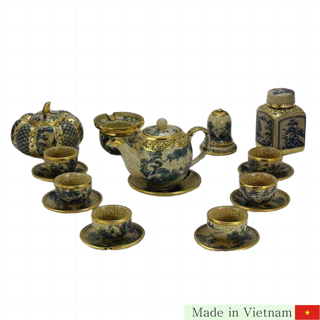 이 다기 세트는 전통 도자기 기술과 현대적 감각이 조화를 이루어 어디에나 잘 어울립니다. 고동 도금 처리된 균열 문양은 오랫동안 사용해도 변치 않는 아름다움을 자랑하며, 실용적이면서도 인테리어 효과가 뛰어납니다. 단순히 차를 마시는 도구 이상의 가치로, 선물용으로도 손색없습니다.