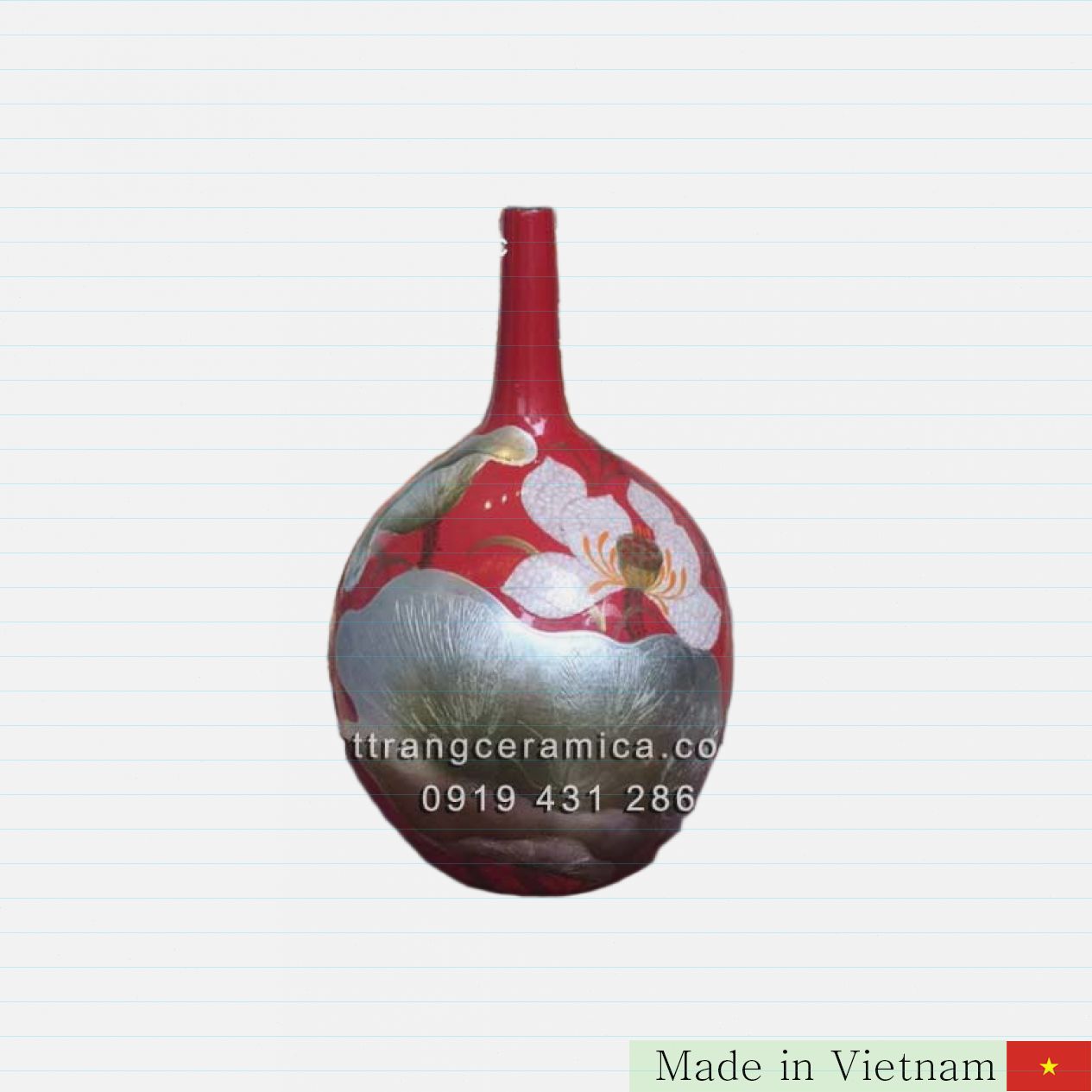 Tỏi quả gấc đỏ sơn mài khảm bạc 38cm은 현대적인 디자인과 정교한 장인정신이 돋보이는 고급 장식품입니다. 높이 38cm, 배 부분 지름 22cm의 완벽한 비율로 제작되어 거실이나 특별한 공간을 세련되게 꾸며줍니다. 이 제품은 베트남 바트짱(Bát Tràng)에서 제작되어 전통과 품질을 동시에 자랑합니다.