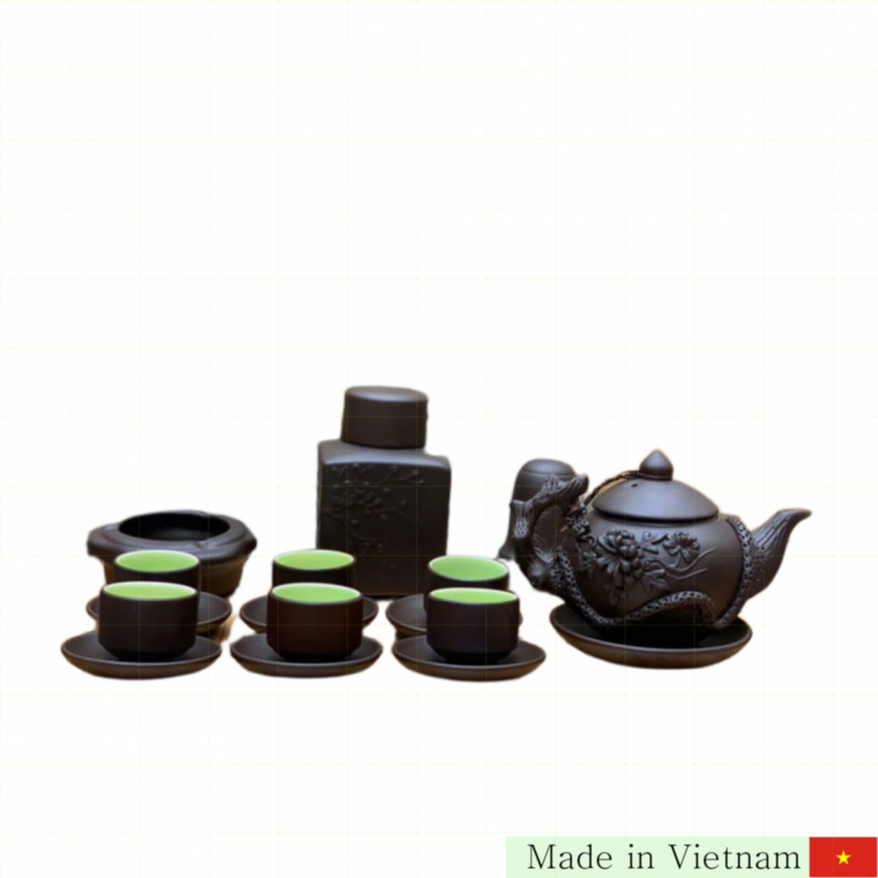 이 17피스 주자 찻잔 세트는 전통적인 바트장(바트랑) 도자기의 장인정신이 담긴 완벽한 한 세트입니다. 1개의 주전자와 6개의 찻잔, 7개의 받침, 1개의 차 상자, 1개의 치약통, 그리고 1개의 재떨이로 구성되어 있어 차를 즐기기에 필요한 모든 도구가 갖춰져 있습니다. 주전자는 높이 12cm, 길이 18cm이며 400ml의 넉넉한 용량을 자랑합니다. 찻잔은 높이 4cm, 직경 6cm로 편안한 손잡이와 완벽한 크기입니다.
