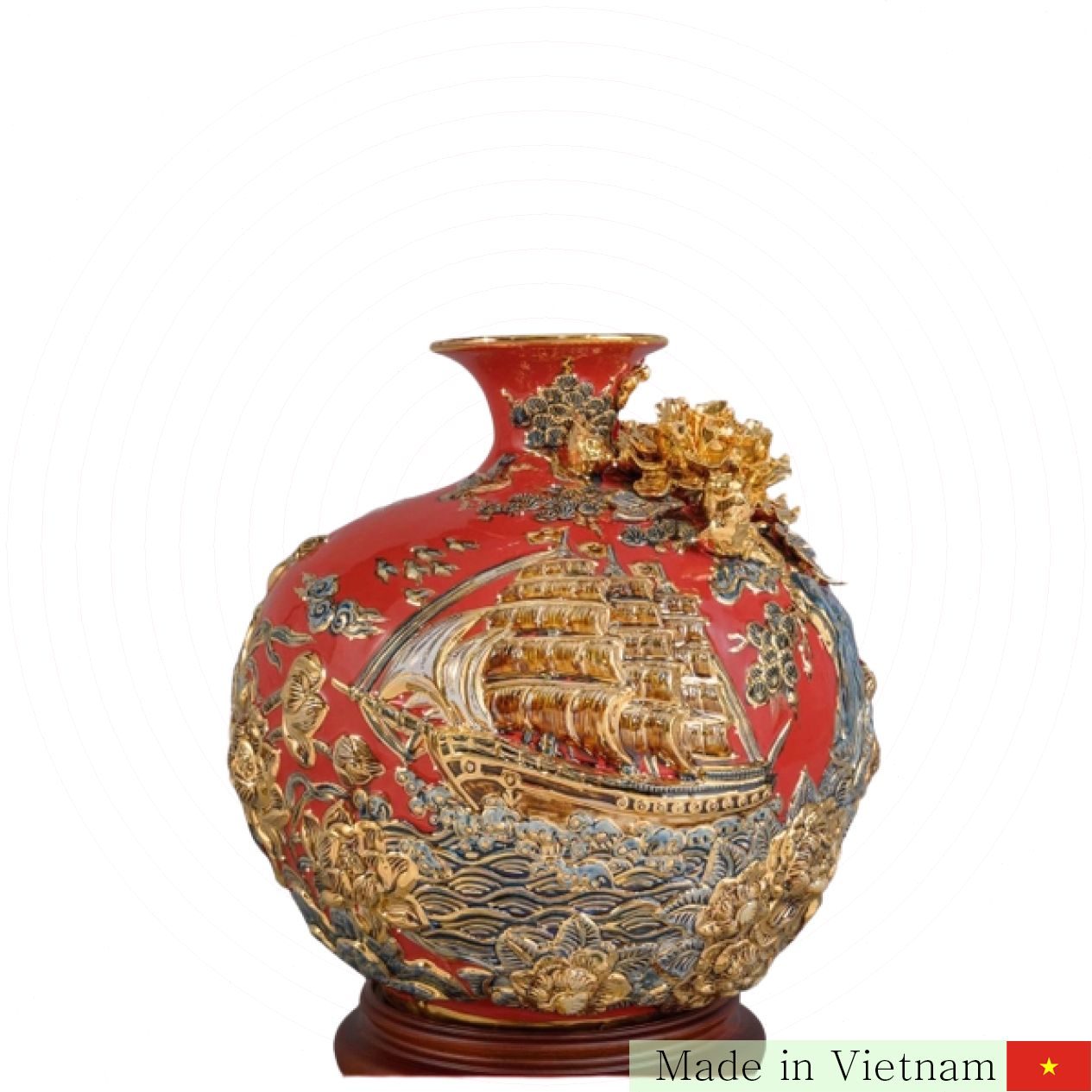 제품명: Bình Hút Lộc Thuận Buồm Xuôi Gió Men Đỏ Vẽ Vàng Gốm Sứ Bát Tràng