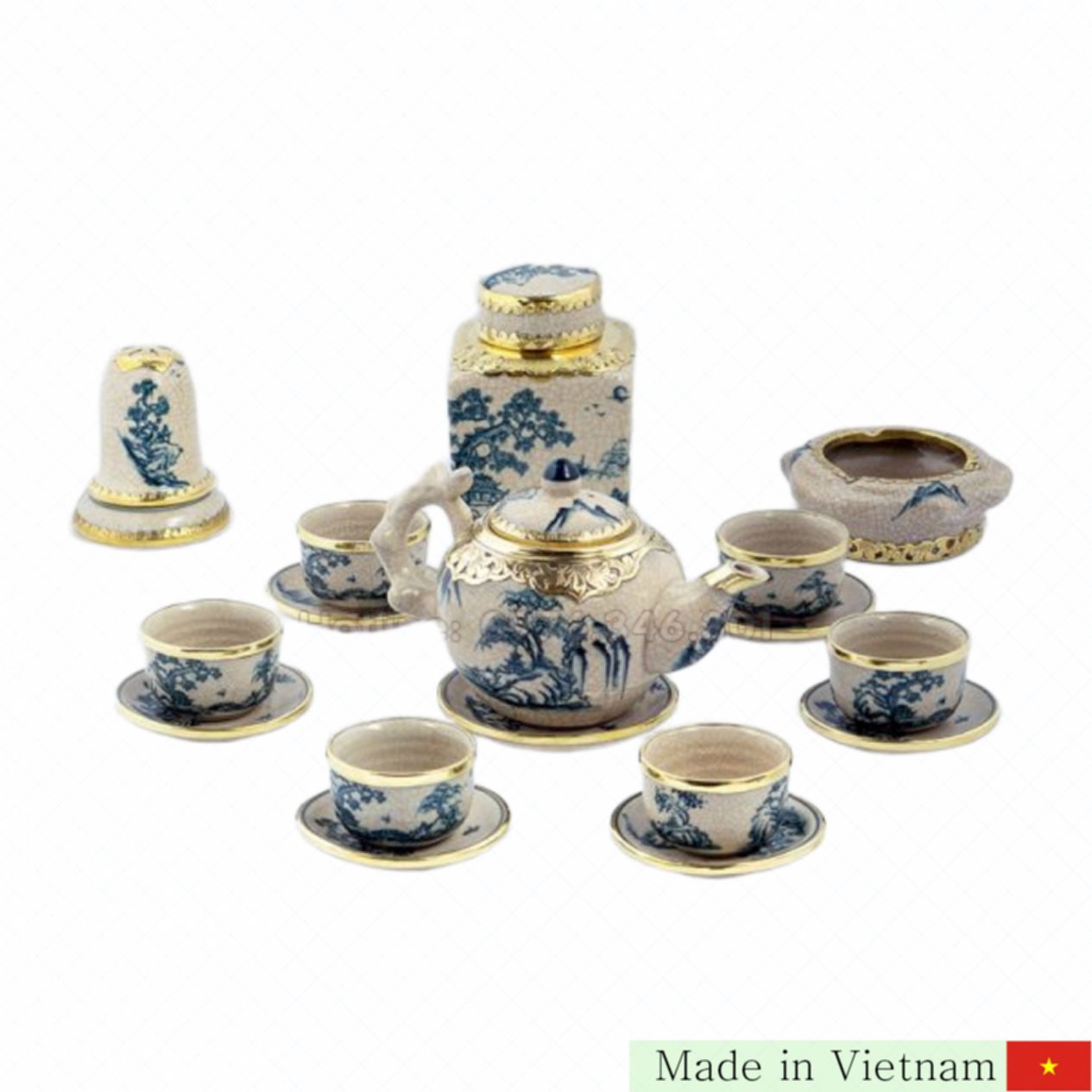 Bát Tràng 균열 무늬 도자기는 16세기에서 20세기 초까지 이어진 오랜 역사와 전통을 지닌 귀한 도자기입니다. 숙련된 장인들이 전통 기술인 양각, 음각, 엄선된 점토 혼합법을 계승하여, 독창적이고 생명력 넘치는 작품을 완성했습니다. 이 다기 세트는 베트남 도자기 예술의 정수를 보여주며, 디테일 하나하나에 예술적 가치가 스며 있습니다.