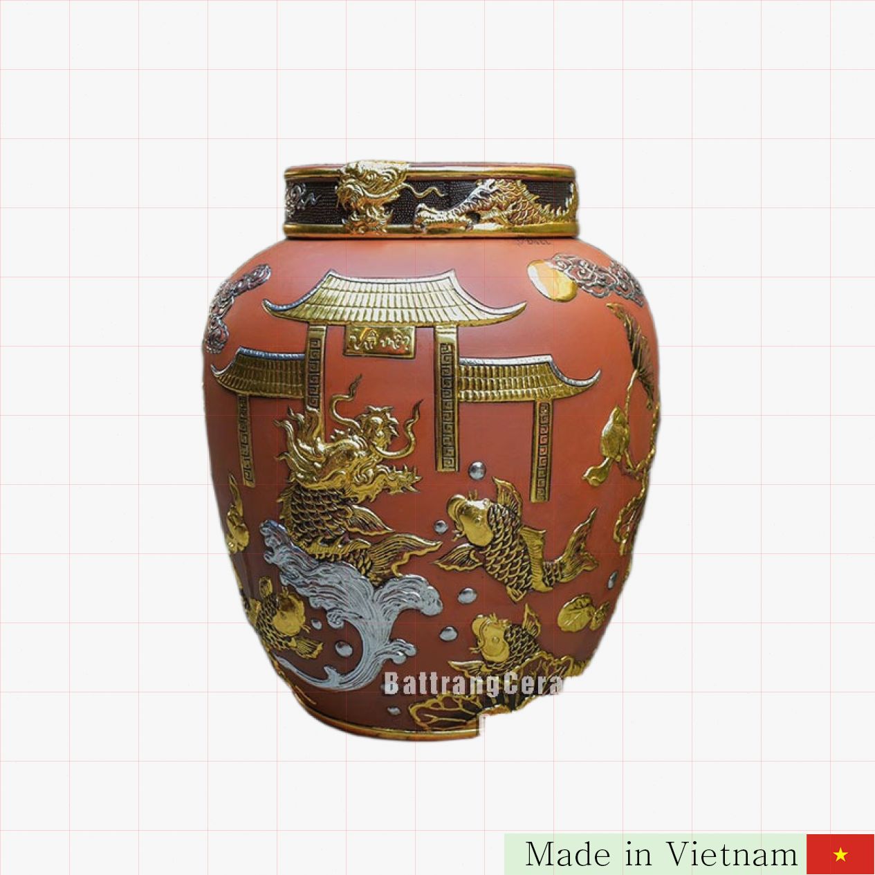50L 금박 장식 용 잉어가 용으로 변하는 전통 발효 도자기 항아리 🌟