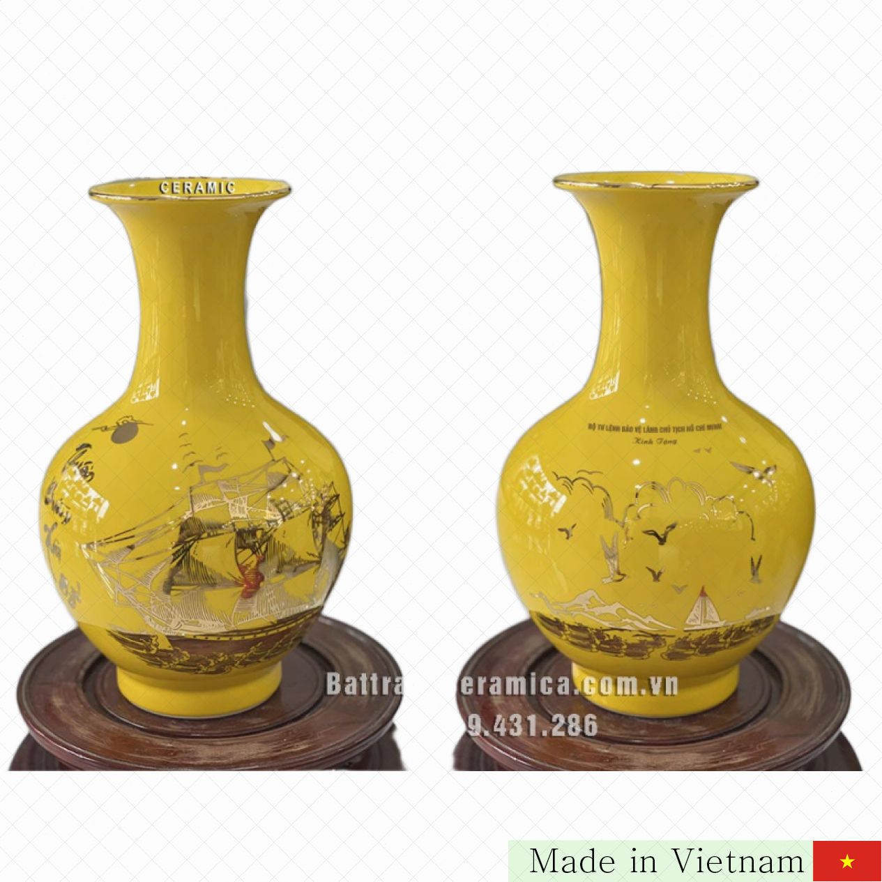 황금으로 섬세하게 장식된 이 마늘 모양 도자기 화병은 한국 전통 바트쨍(Bát Tràng) 도자기 장인의 정성이 깃든 명품입니다. 기업 행사나 특별한 날, 기념일 선물로 표준화된 로고 인쇄가 가능하여 의미 있는 선물이 됩니다. 선물을 담는 고급스러운 실크 포장 상자는 받는 이에게 특별함과 품격을 더해줍니다.