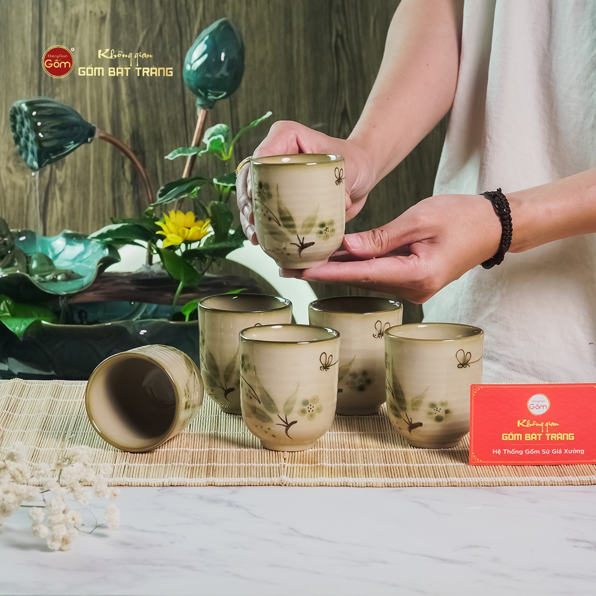 이 고급스러운 찻잔은 전통적인 Bát Tràng 도자기 장인들의 손길로 정성껏 제작되었습니다. 슬림하고 단정한 형태에 크림빛 유약과 초록빛 대나무와 잠자리 문양이 조화를 이루어 시선을 사로잡습니다. 견고한 도자기 뼈대와 두꺼운 유약층은 내구성을 높이고, 사용 후에도 색과 무늬가 변하지 않아 오랫동안 빛나는 아름다움을 유지합니다.