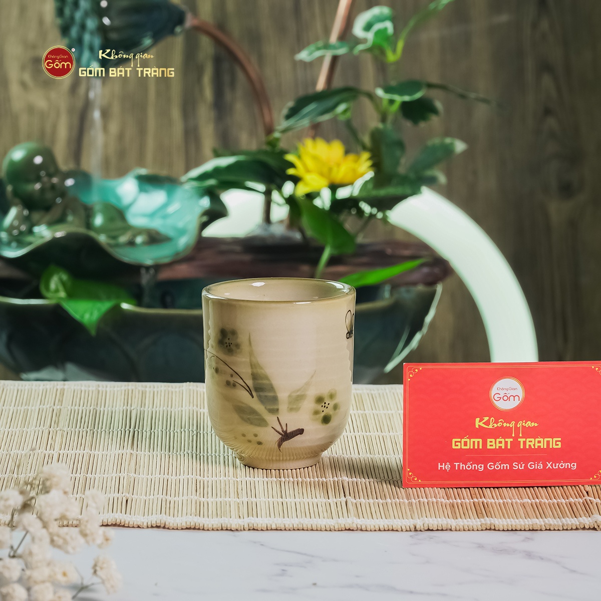 Cốc Uống Trà Dáng Thon Họa Tiết Chuồn Trúc – tuyệt phẩm gốm sứ thủ công đẳng cấp từ Bát Tràng! 🌿