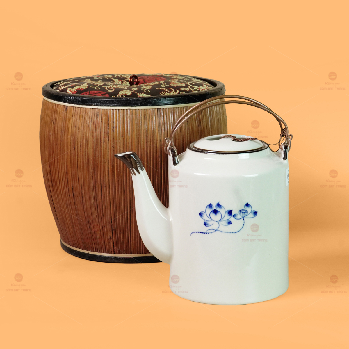 바트짱의 전통 공예로 탄생한 0.3L부터 2L까지 다양한 용량의 연꽃 문양 찻주전자입니다. 고급 도자기 소재로 제작되어 자연 친화적이며, 고온에서 소성하여 인체에 해로운 납 성분 없이 안전하게 쓸 수 있습니다. 세련된 흰색 유약과 섬세한 연꽃 디자인이 어우러져 집이나 사무실 어느 공간에서든 우아함을 더합니다.