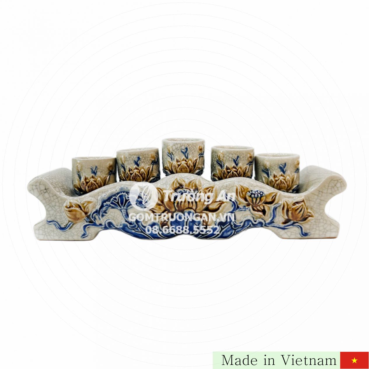 고급스러운 5구 잔 도자기, Phúc Quý 멋진 균열 무늬와 함께 ✨
