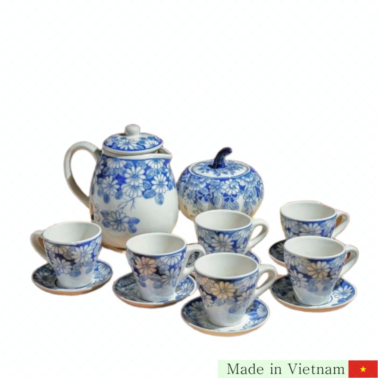 Bát Tràng 고급 도자기 세트 – 행복과 풍요를 상징하는 청국화 문양 🍀