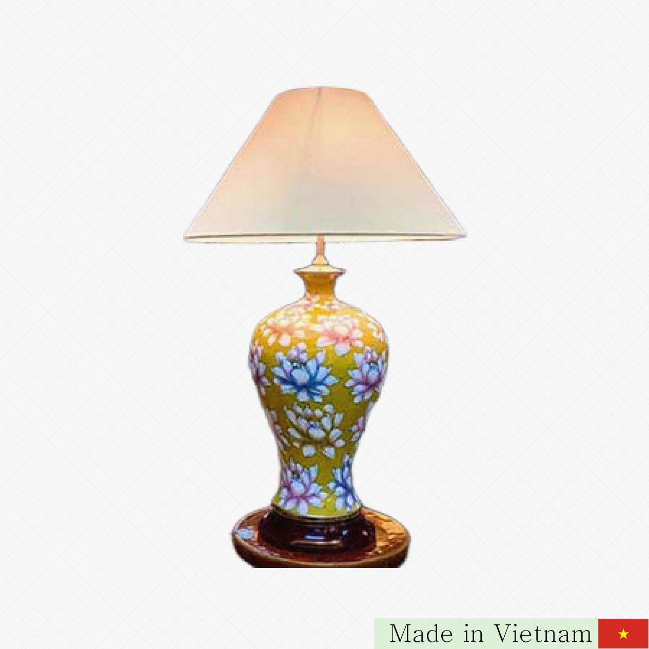 고급 노란색 배경 담긴 연꽃 무늬 세라믹 무드등✨