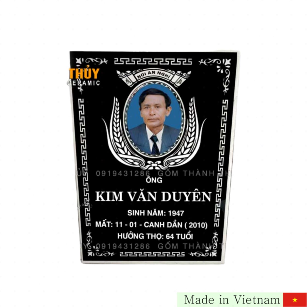 30cm × 40cm 크기의 고급 검은 배경 도자기 묘비로서, 전통적인 바트짱(Bát Tràng) 도자기 기술로 제작되어 뛰어난 품질과 내구성을 자랑합니다. 고온 1200도에서 정교하게 구워진 유약은 선명하고 아름다운 이미지를 오랫동안 유지할 수 있어 소중한 분의 기억을 영원히 간직하기에 완벽한 제품입니다.