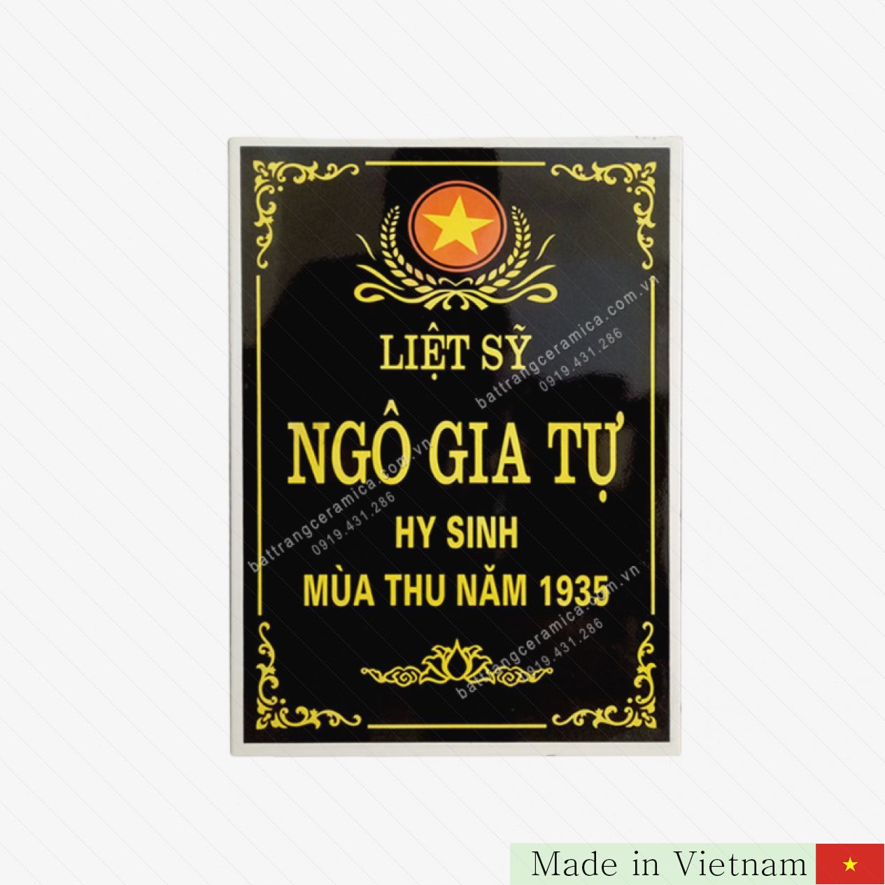 검은 바탕 30 x 40 cm 크기의 도자기 묘비 🌑✨