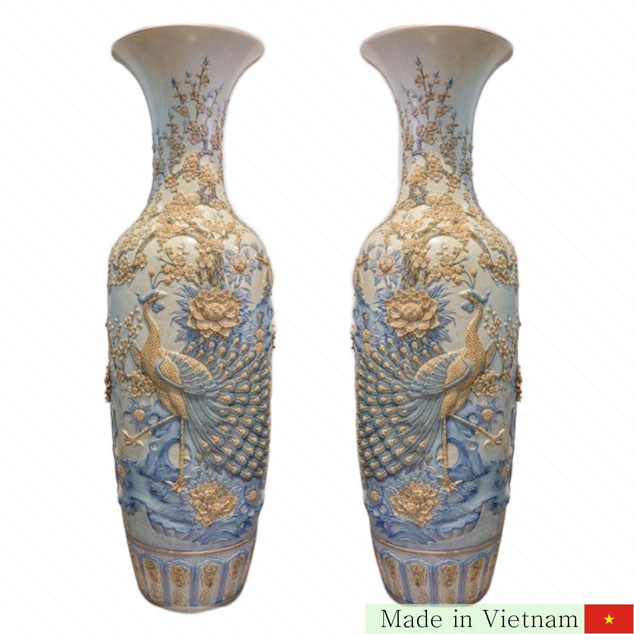 공(공작새)과 도(복숭아꽃)는 풍수에서 긴밀한 상징을 지닙니다. 공작새의 깃털은 하늘과 땅의 정기를 끌어들이며 균형 잡힌 기운을 형성해 집과 사업장에 행운을 가져다줍니다. 복숭아꽃과 함께 어우러져 번영과 행운을 상징하고 부정한 기운을 쫓아냅니다.