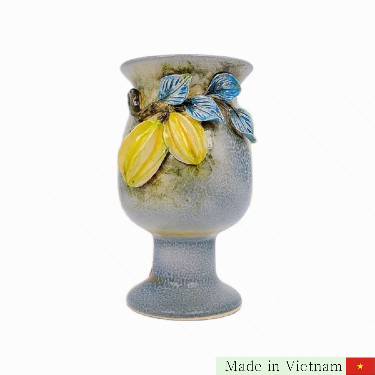 이 화병은 베트남 바트쨩 전통의 고급 도자기로 제작되어 탁월한 내구성과 빛나는 표면을 자랑합니다. 부드럽고 광택 있는 재질은 오랜 사용에도 변함없는 아름다움을 유지하며 청소와 보관이 매우 용이합니다. 수작업 입체 조각 기법으로 하나하나의 디테일이 정교하게 완성되어 독특하며 고급스러운 느낌을 더합니다.