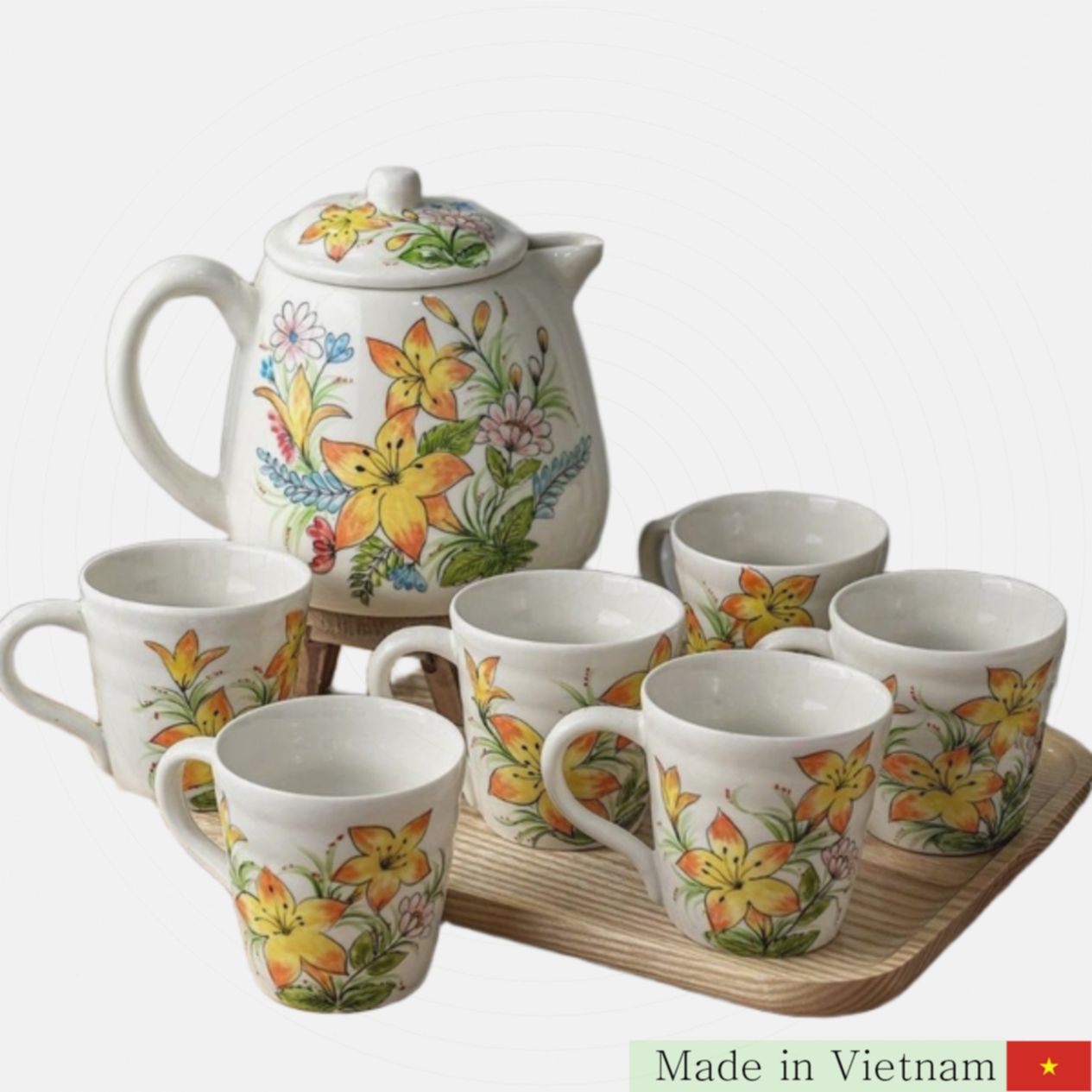 우리의 최고급 바트짱 도자기 다기세트, 프럭록 위엔민 VM155는 전통 수공예 기법으로 탄생한 정통 명품입니다. 고온에서 1200도 이상 소성한 고품질 바트짱 도자기로 제작되어, 내구성과 안전성을 완벽하게 보장하며 건강까지 지켜줍니다. 세련된 손그림 장식이 우아한 분위기를 더해, 일상 사용부터 소중한 선물용까지 다양한 용도에 완벽히 어울립니다.