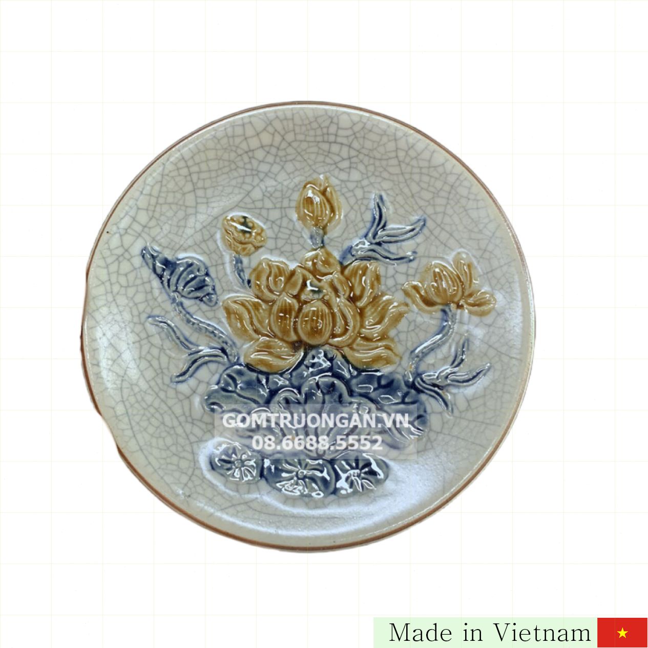 본 제품은 유명한 바트짱(Bát Tràng) 도자기 장인이 제작한 14.5cm 지름의 고급 트루아 쟁반입니다. 크랙 유약이 돋보이는 독특한 표면 질감과 연꽃 문양이 어우러져 한층 더 우아한 분위기를 연출합니다. 고급스러운 디테일과 뛰어난 마감 처리로 실제 사용은 물론 인테리어 소품으로도 빛을 발합니다.