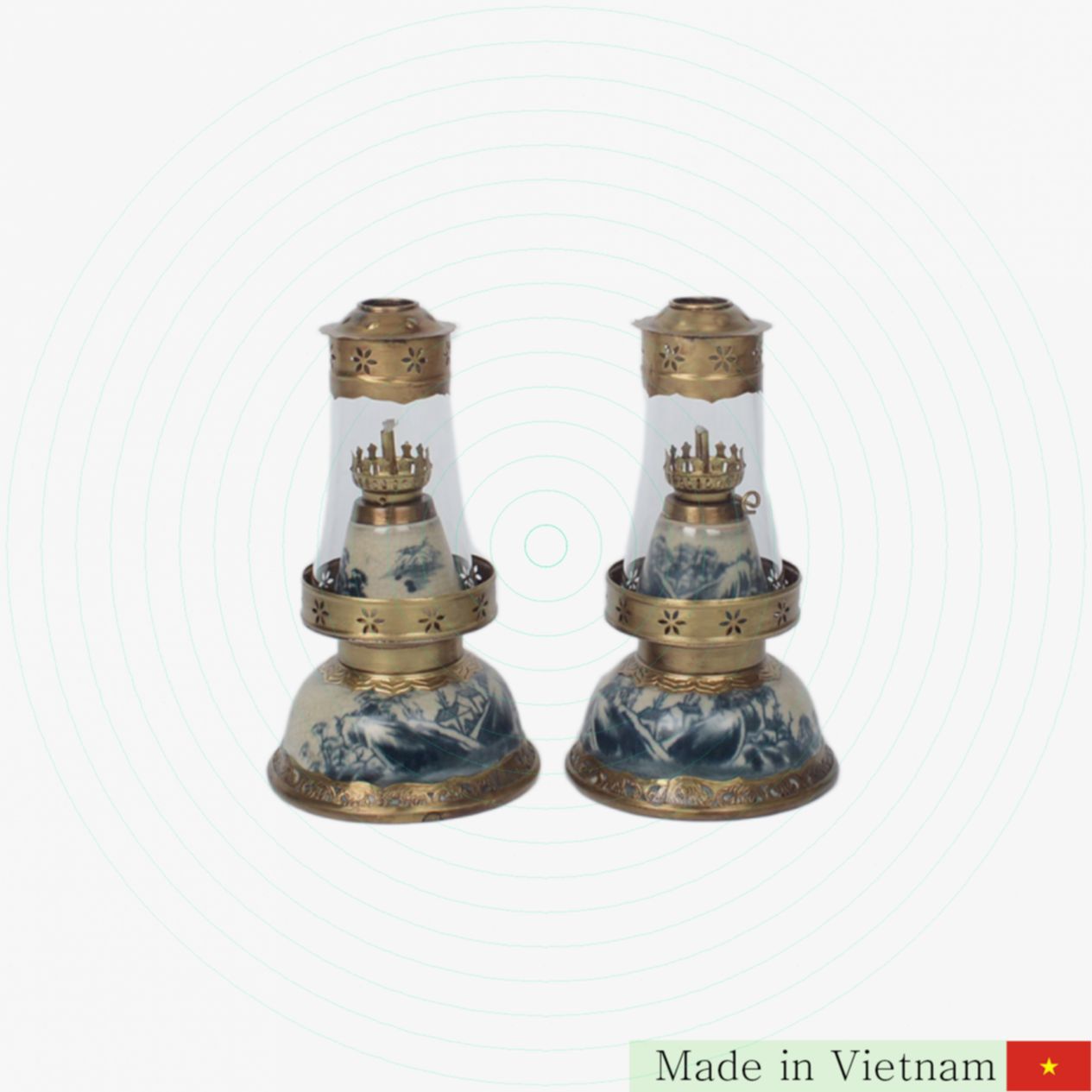 이 전통적인 쪼개진 유약 촛대는 고풍스러운 분위기를 자아내는 완벽한 장식이자 의례용 등입니다. 베트남의 유명한 도자기 마을 바트짱(Bát Tràng)에서 정성스럽게 제작되어 질 높은 세라믹에 세련된 농촌 풍경이 섬세하게 그려져 있습니다. 고전적이면서도 품격 있는 디자인이 인테리어와 의례 공간 모두에 탁월한 조화를 이룹니다.