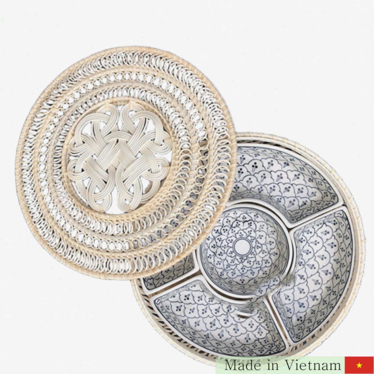 저희는 전통과 현대가 만나는 예술작품, 배트창(Bát Tràng) 전통 도예 장인의 정교한 손길이 담긴 고급 세라믹 멜론 트레이 세트를 소개합니다. 이 세트는 단순한 수저함을 넘어서 집안을 품격 있게 장식하며 명절 분위기를 한층 더 고조시켜줍니다.