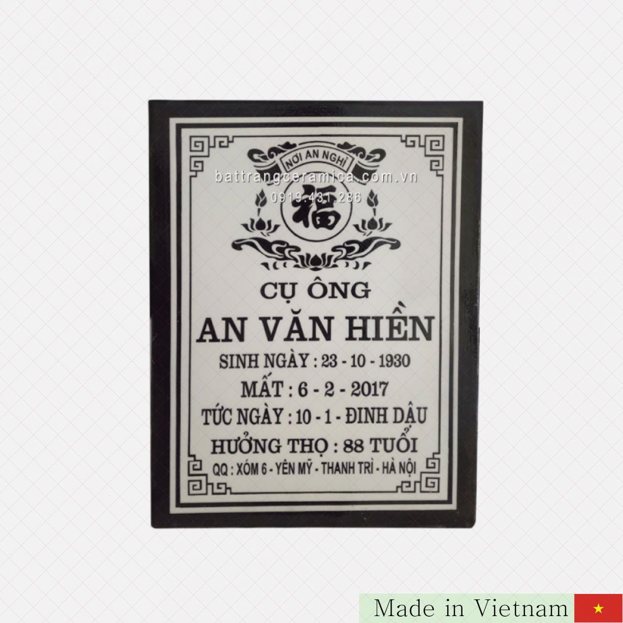 30 x 40 cm 크기의 고품질 도자기 묘비를 소개합니다. 정교한 바트짱 도자기 장인의 기술로 만들어진 이 묘비는 1200도 이상의 고온에서 구워져 견고함과 아름다움을 동시에 자랑합니다. 고유한 유약 처리로 내구성을 높였으며, 깔끔한 디자인으로 장례 공간에 품격을 더합니다.