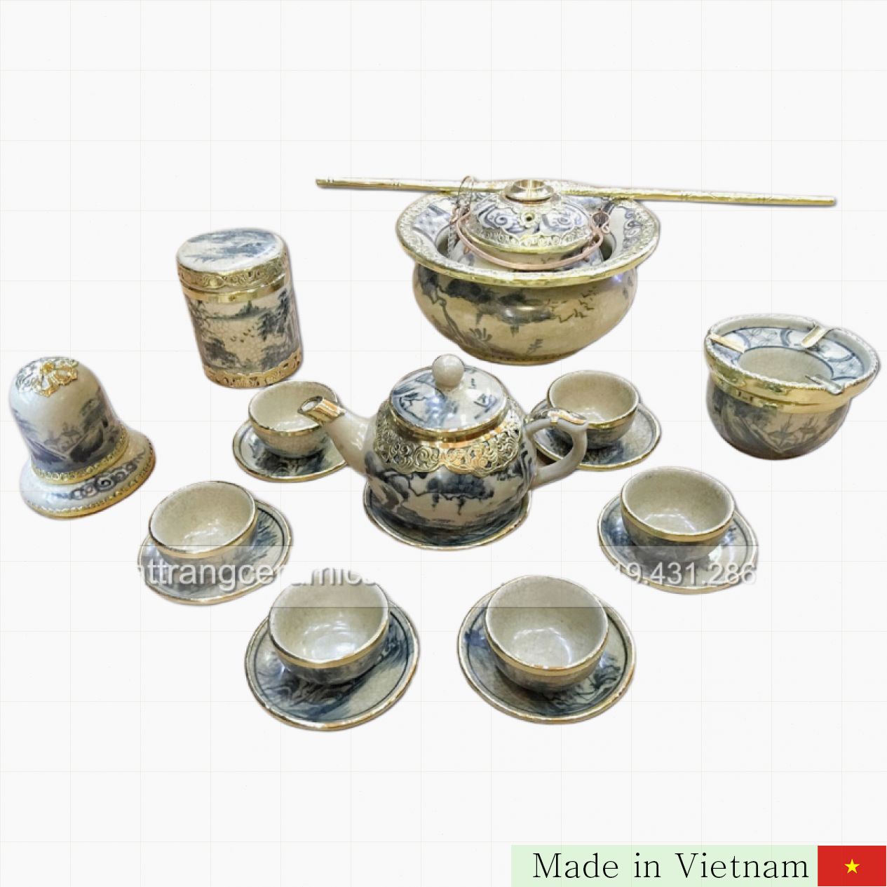 이 세트는 깔끔한 골짜기 균열 문양의 멋진 유약으로 마감되어 있어 고급스러움을 자랑합니다.