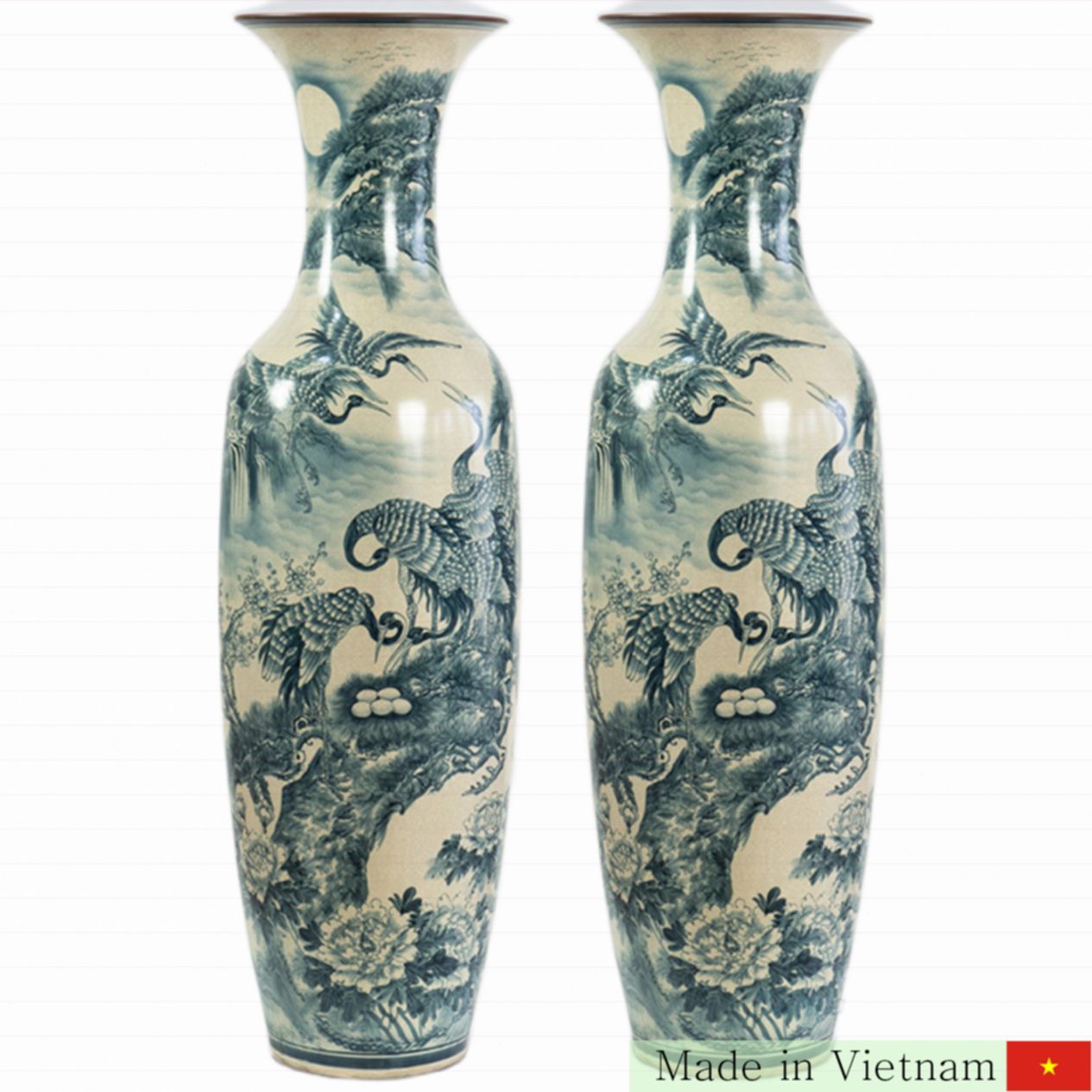 저희는 최고의 장인정신으로 탄생한 호랑이 무늬 균열 유약 학과 소나무 도자기 꽃병을 소개합니다. 약 1m4 높이로 우아하면서도 웅장한 크기는 어느 공간에나 품격을 더해줍니다. 바트쨩(Bát Tràng) 도예 장인들의 섬세한 손길이 느껴지는 이 독특한 도자기 꽃병은 오랜 전통과 현대적 감각이 조화롭게 어우러진 작품입니다.