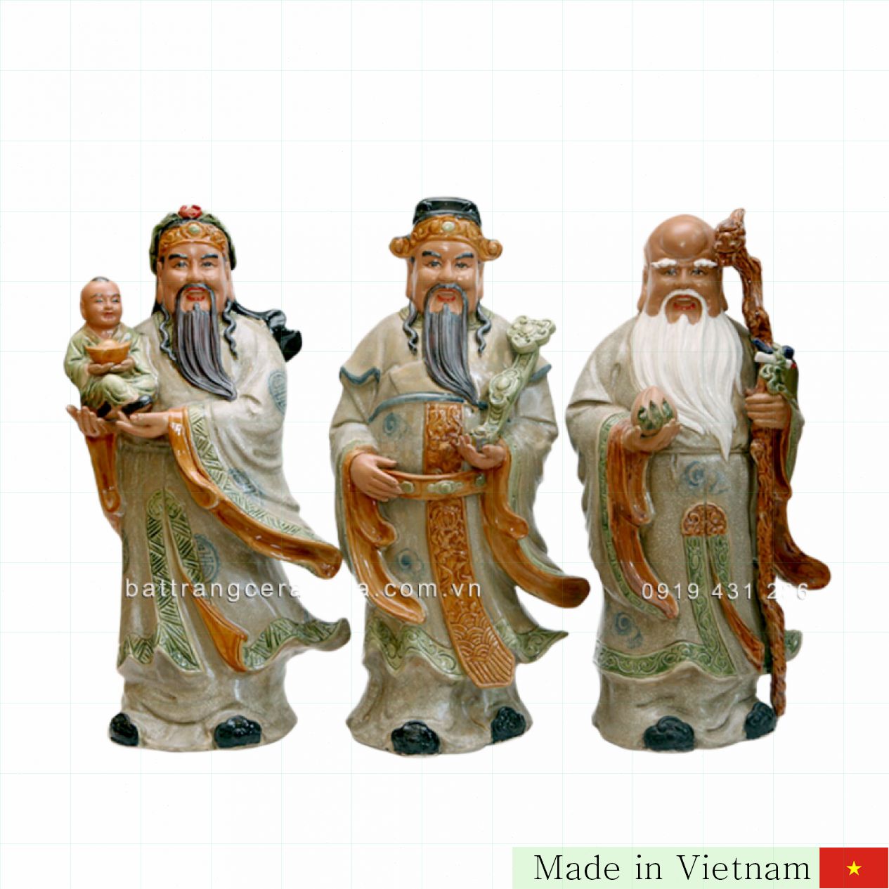 60cm 크기의 삼다상은 고급 바트짱 도자기로 제작되었으며, 전통 균열 유약으로 마감되어 시간이 지나도 변색 걱정 없이 오래도록 아름다움을 유지합니다. 1,200~1,300도의 고온에서 구워 견고함과 명품 품질을 자랑합니다.
