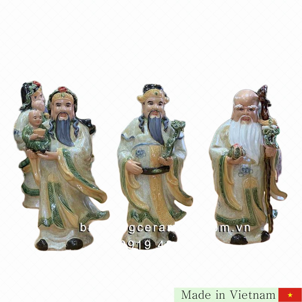 삼태(복·록·수) 상은 인간의 세 가지 큰 행복, 즉 복(따뜻한 가정과 건강한 자손), 록(풍부한 재물), 수(건강하고 장수)를 상징합니다. 이 특별한 40cm 크기의 삼태 상은 고급 바트장에서 만든 도자기로, 고풍스러운 균열 무늬의 유약 아래 세련된 멋을 자랑합니다. 최고 온도인 1,200~1,300도에서 구워져 색상이 오래도록 변하지 않고 뛰어난 내구성을 보장합니다.