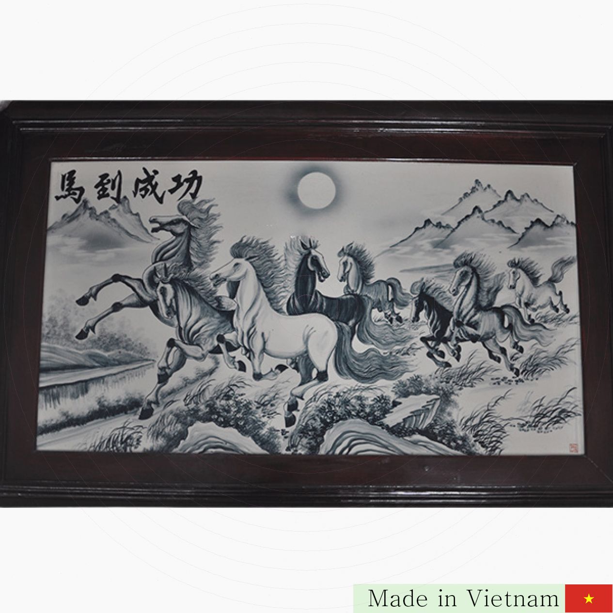 트렌디하고 고급스러운 백토 도자기, 바트짱 장인의 예술혼이 담긴 흑백 말 마도성공 도자기 액자를 소개합니다. 이 작품은 강인한 여덟 마리 말의 기운을 담아 행운과 번영을 상징하며 집안의 분위기를 한층 격상시켜 줍니다.