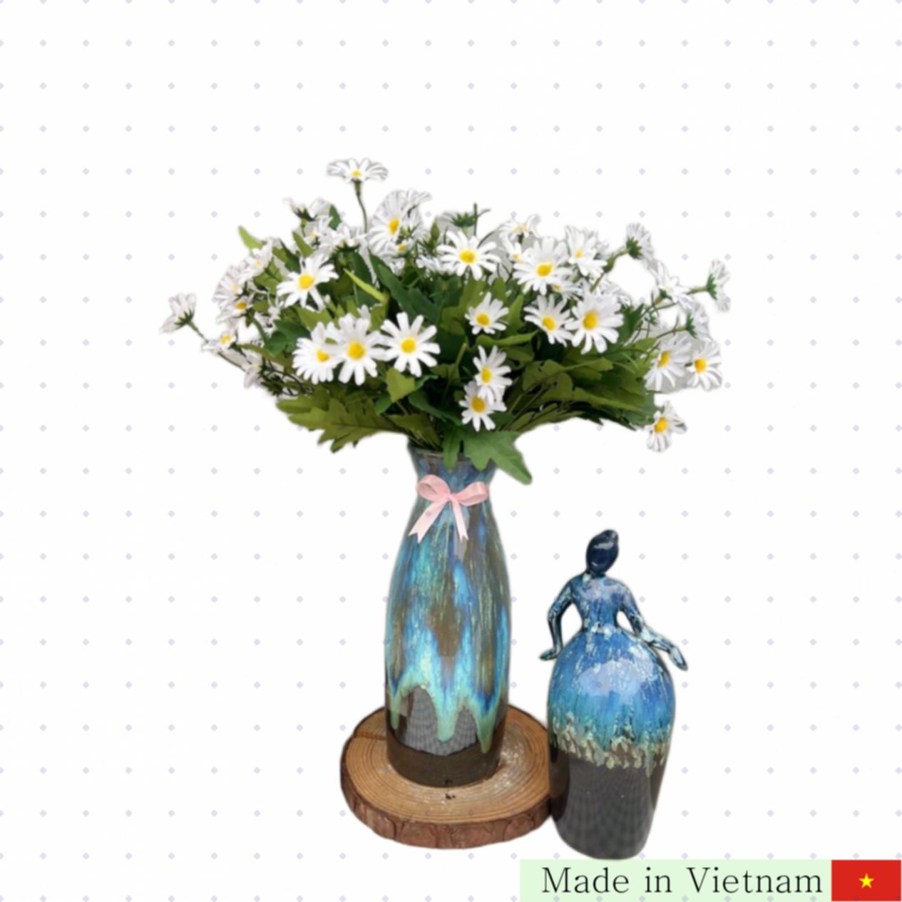 이 화병은 전통적인 바트창 도자기 공방에서 정성껏 만들어졌습니다. 백자, 흑자, 갈색자 등 다양한 도자기 소재와 함께 다채로운 유약 기법이 적용되어 고급스러운 마감이 특징입니다. 반짝이는 유약 표면은 은은한 빛을 발산하며 인테리어에 특별한 포인트를 줍니다.