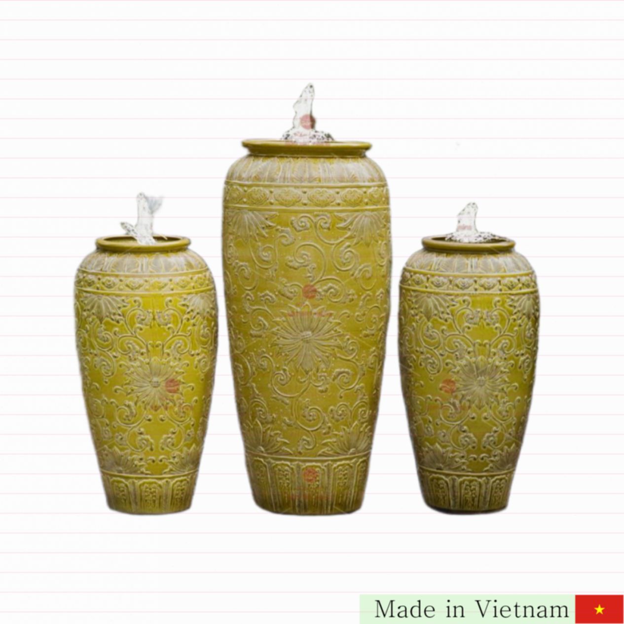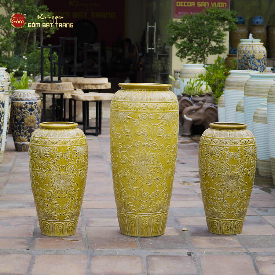 이 풍수 물항아리는 최고급 도자기와 철저히 선별된 점토로 만들어졌습니다. 높이 95cm의 대형과 72cm의 소형 두 가지 크기로 제공되어 공간에 맞게 연출이 가능합니다. 높이와 무게감이 있는 디자인은 공간의 중심이 되어 시각적 아름다움을 극대화합니다. 금빛 꽃무늬가 양각되어 있어 전통미와 세련된 감각이 조화롭게 어우러져 있습니다.
