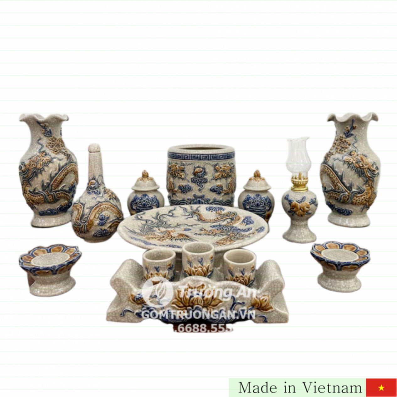 Bát Tràng 명품 🔥 Phúc Quý 용문 래이즈드 세라믹 제사 세트 🎉