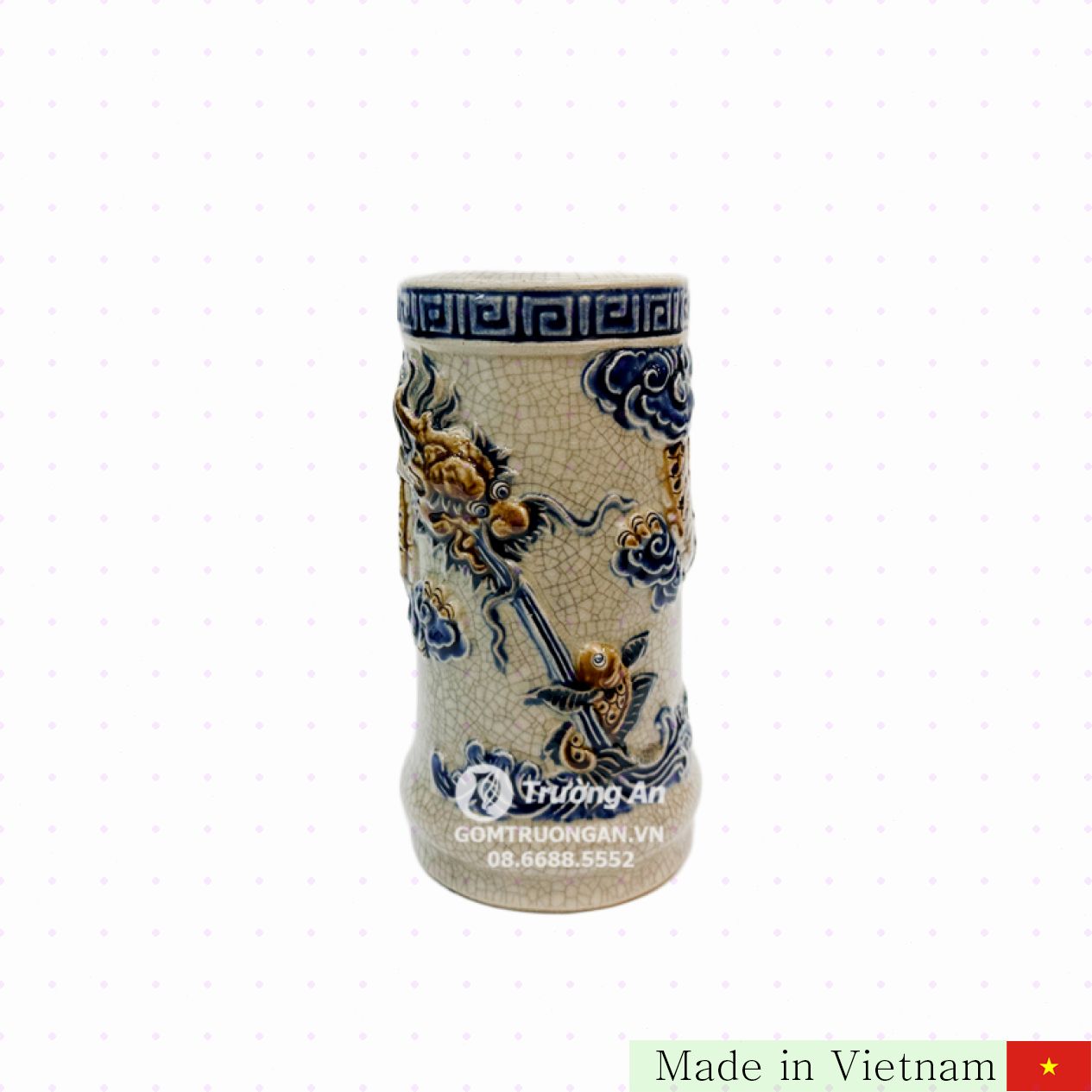 복귀 S2 옹기향꽂이는 바트랑(Bát Tràng)에서 만든 최고급 도자기 제품으로, 세련된 옹기와 독특한 균열 문양의 광택이 돋보입니다. 이 제품은 아름다운 용과 잉어 패턴이 정성스럽게 새겨져 있어 전통적인 아름다움을 현대적으로 재해석했습니다. 고급 도자기 재질로 제작되어 오랜 시간 사용해도 변색 없이 견고함을 유지합니다.