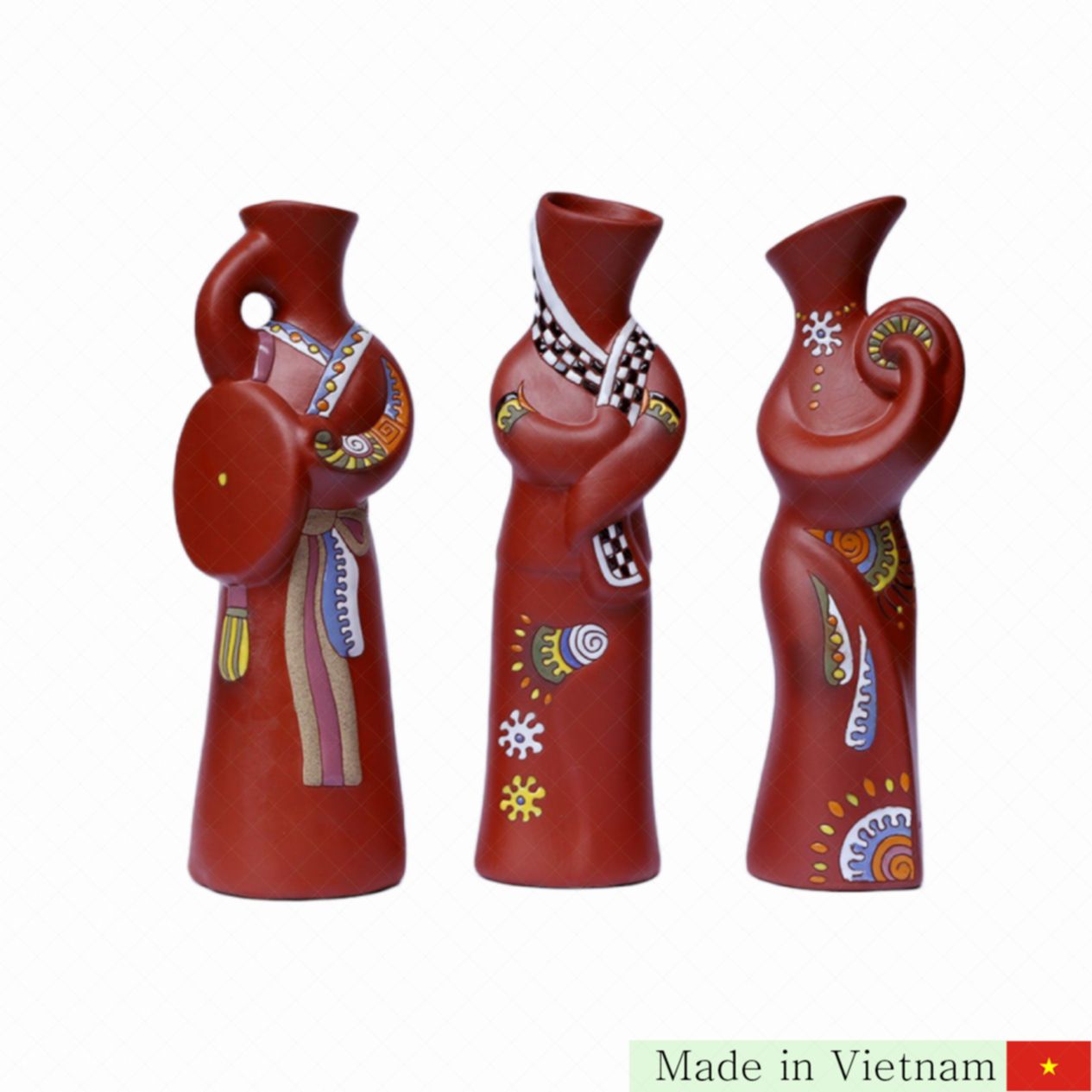 각 꽃병에는 북, 중, 남 삼지방의 전통 의상을 입은 세 여성상이 정교하게 그려져 있습니다. 이는 민족의 단결과 문화적 자부심을 상징하며, 보는 이로 하여금 깊은 감동을 선사합니다. 세심한 손길로 완성된 예술 작품이기에 소장 가치가 매우 높습니다.