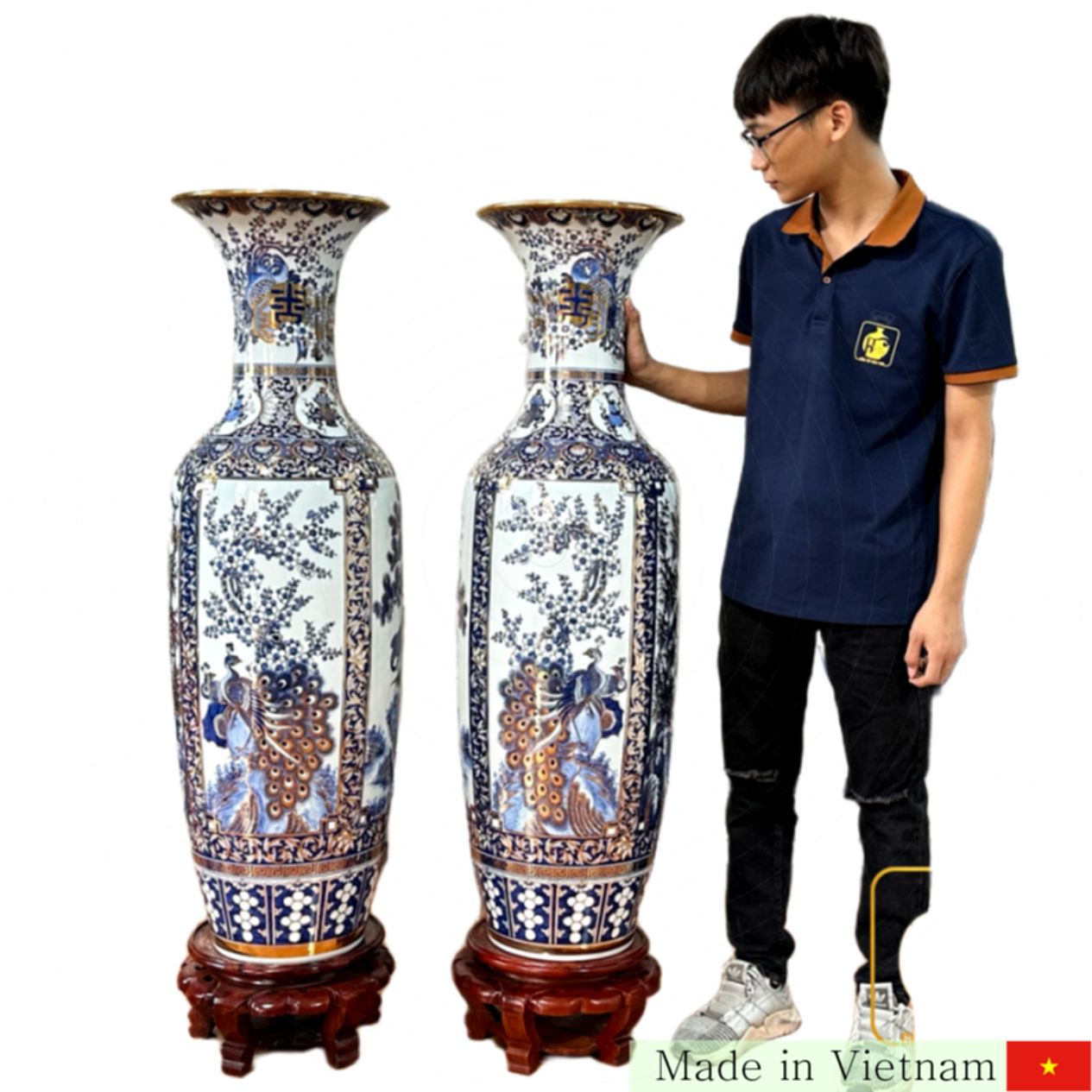LB6LVV1 럭셔리 사분 운학 꽃병 – 1.2m, 1.4m, 1.6m 크기로 준비된 특별한 도자기 작품입니다. 🎨 이 제품은 정교한 24k 금빛 장식과 전통적인 청람 빛 유약이 조화를 이루어 공간에 고급스러운 분위기를 선사합니다. 고품질 수작업으로 빚어진 베트남 바트장 공방 출신의 명작입니다.