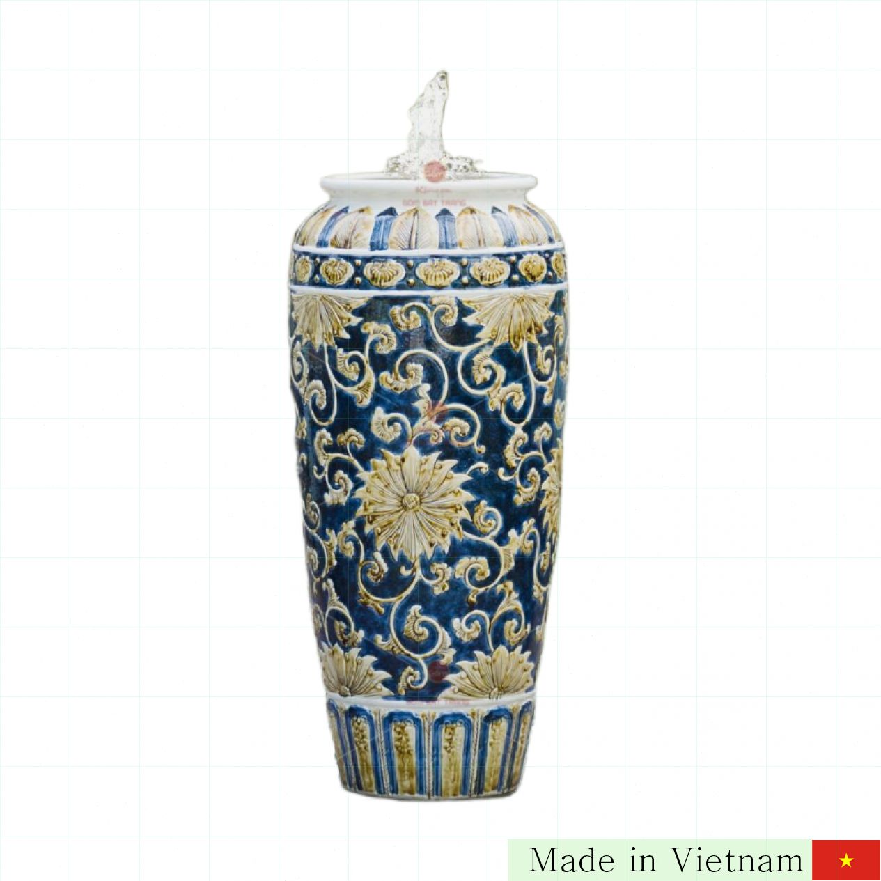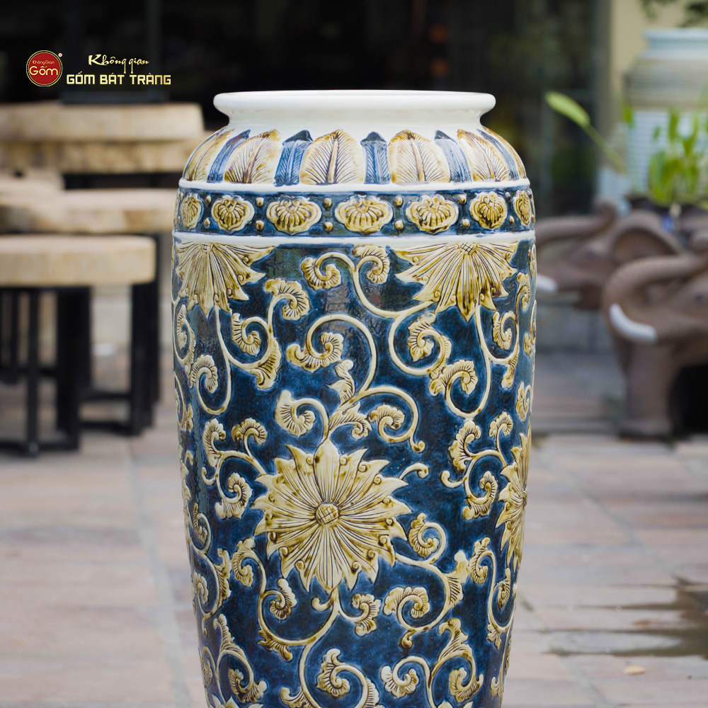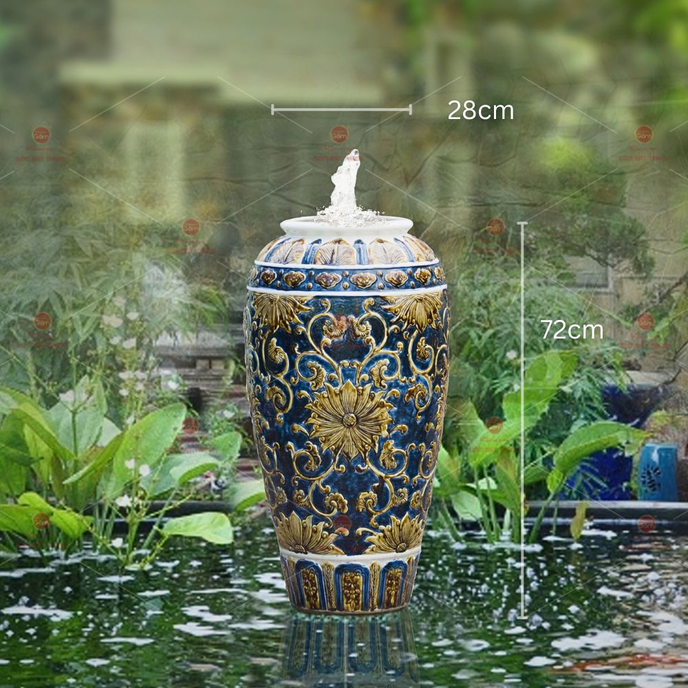풍수 항아리는 전통적인 꽃무늬의 입체감 있는 조각과 조화로운 색감으로 공간에 활기를 불어넣습니다. 거실이나 정원에 두면 눈에 띄는 포인트가 되며, 집주인의 세련된 취향과 긍정적인 라이프스타일을 보여줍니다.
