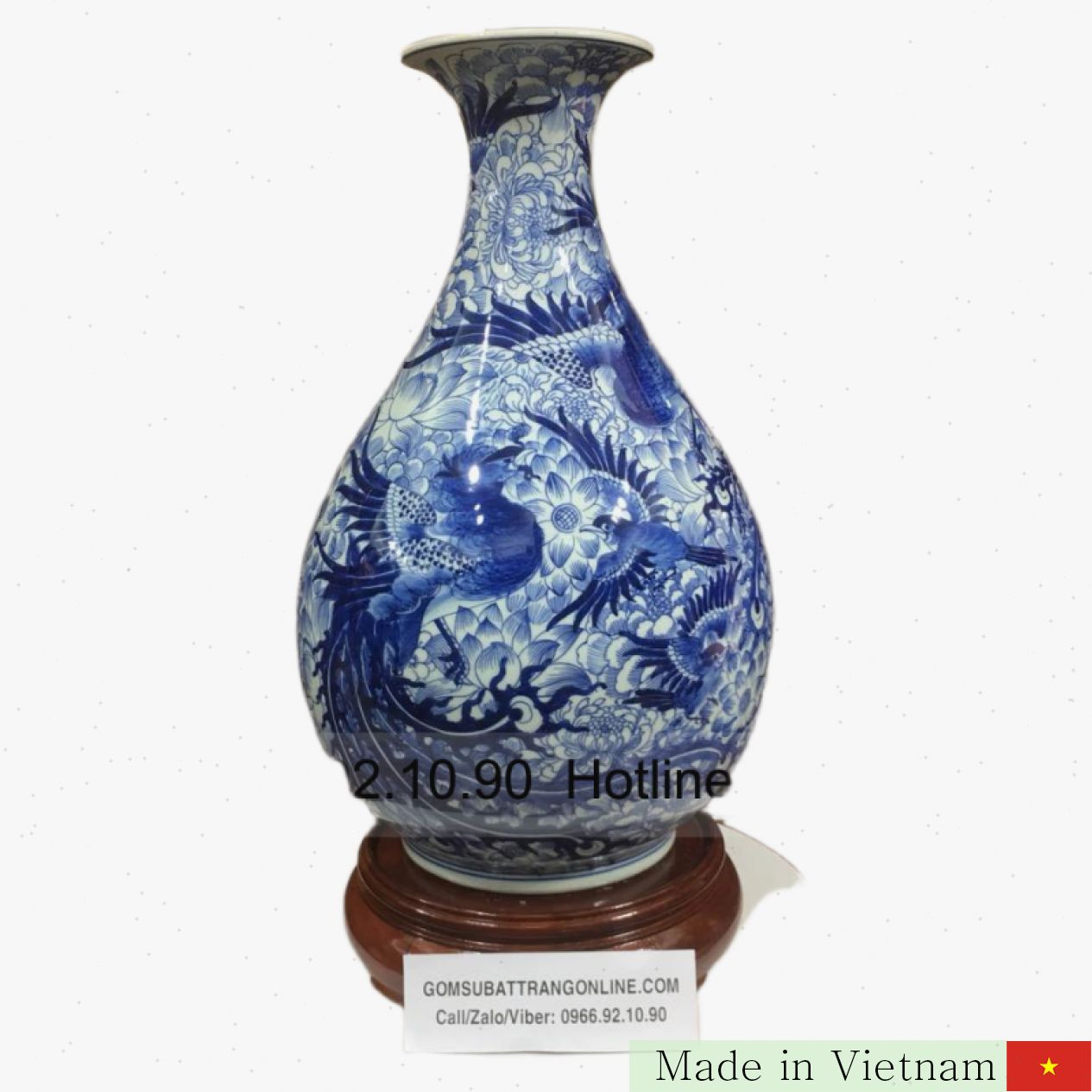 이 비파병은 전통의 멋과 현대의 세련됨을 완벽히 조화시킨 Bát Tràng 명품 도자기입니다. 높이 45cm, 최대 지름 25cm의 크기는 공간에 웅장함과 품격을 더해드립니다. 고급 청자 빛깔과 섬세한 천화 문양이 어우러져 운과 평안, 그리고 성공을 상징하는 탁월한 작품으로 만들어졌습니다.